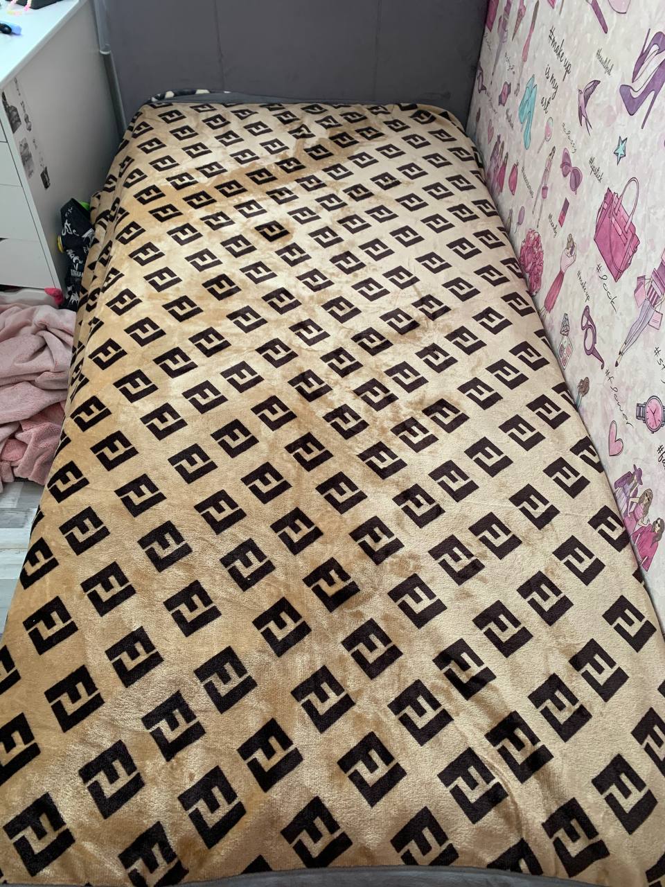 - супер мягкий плед. толстый… цвета насыщенные, принт под известный бренд, классно смотрится. двусторонний, можно менять по настроению))) рекомендую к покупке!
