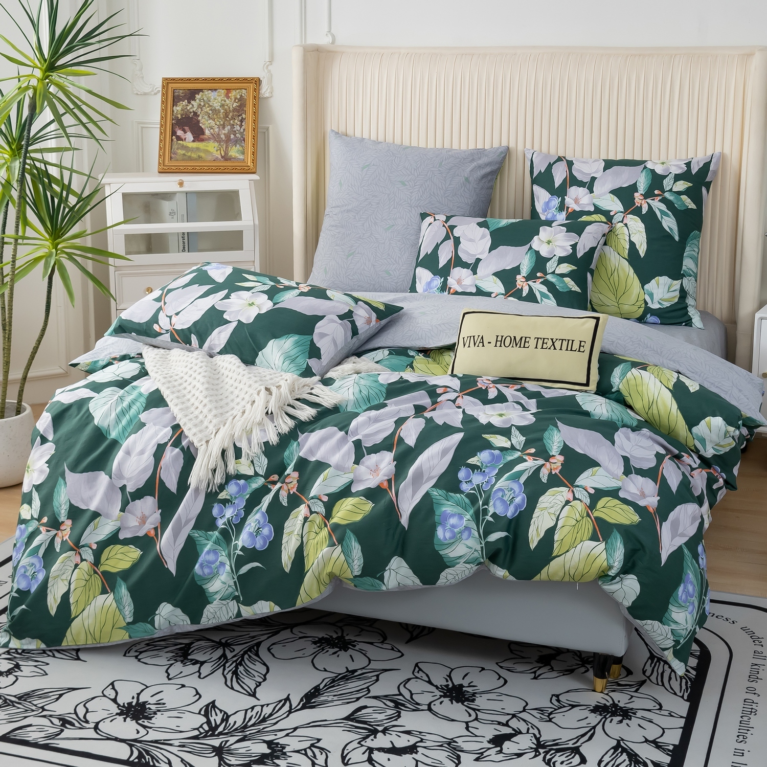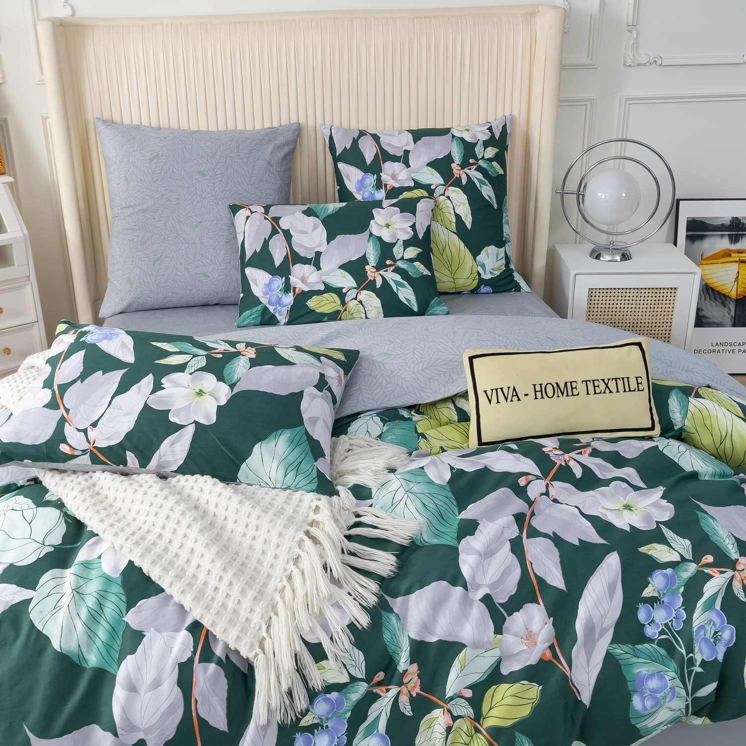 Ткань компаньон: Наволочки с разных сторон разной расцветки, пододеяльник с разных сторон разного цвета, простыня такого же цвета, как низ пододеяльника.