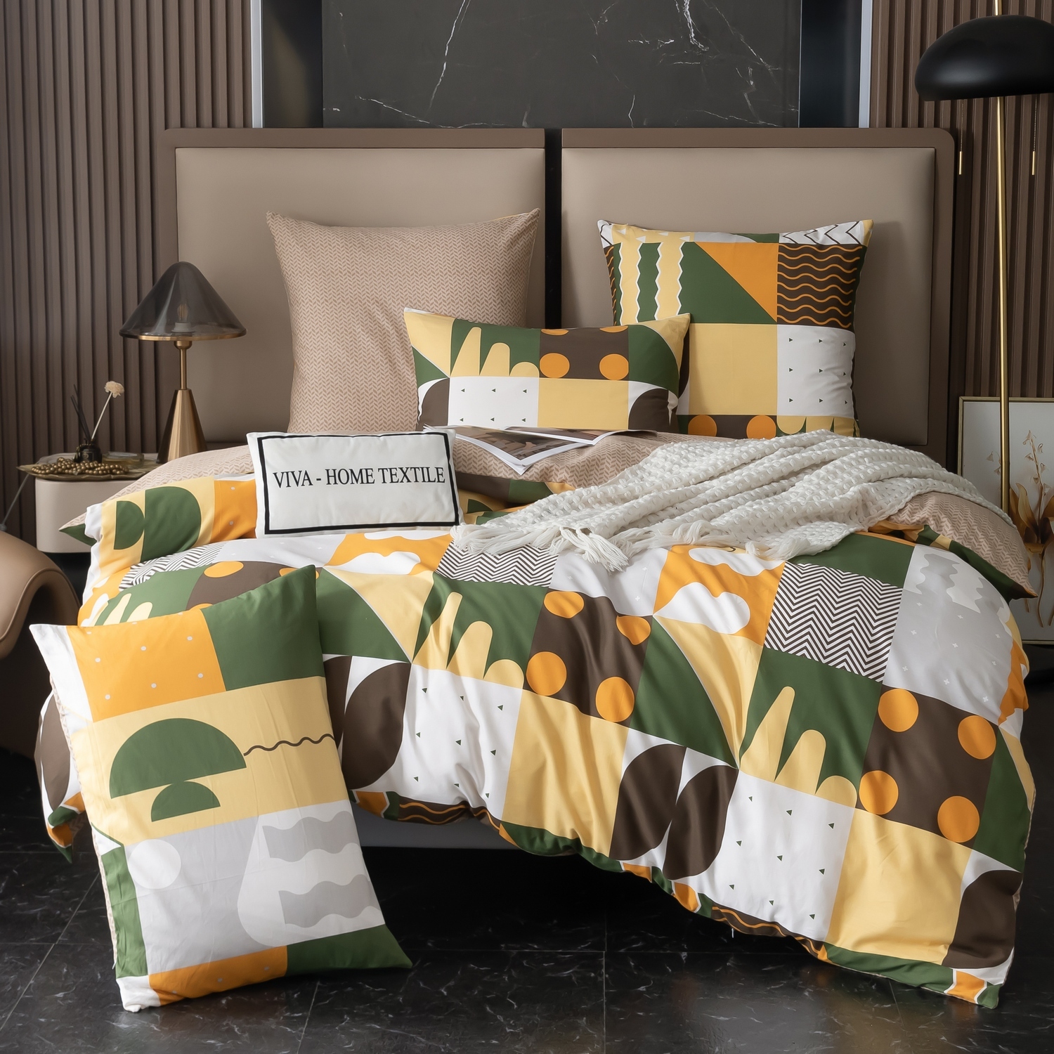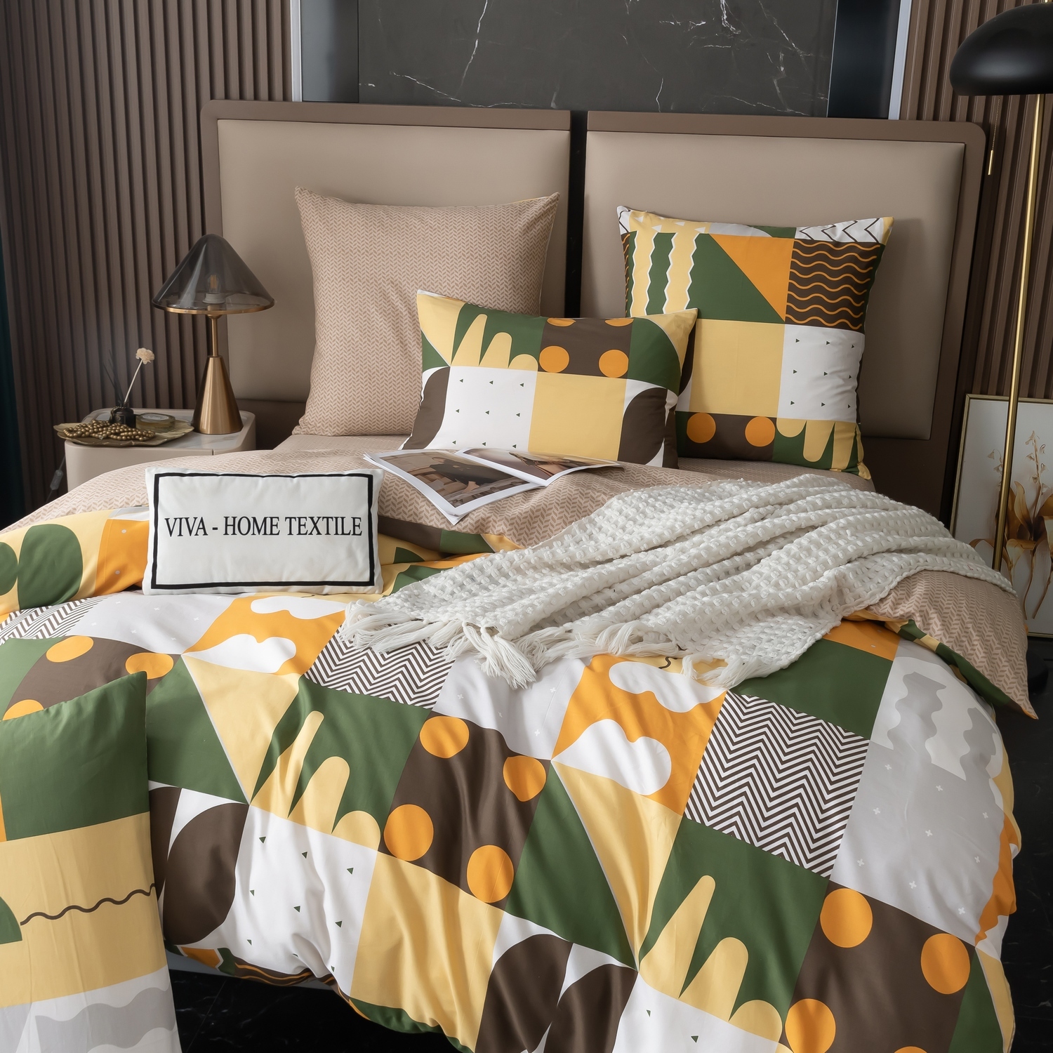 Ткань компаньон: Наволочки с разных сторон разной расцветки, пододеяльник с разных сторон разного цвета, простыня такого же цвета, как низ пододеяльника.