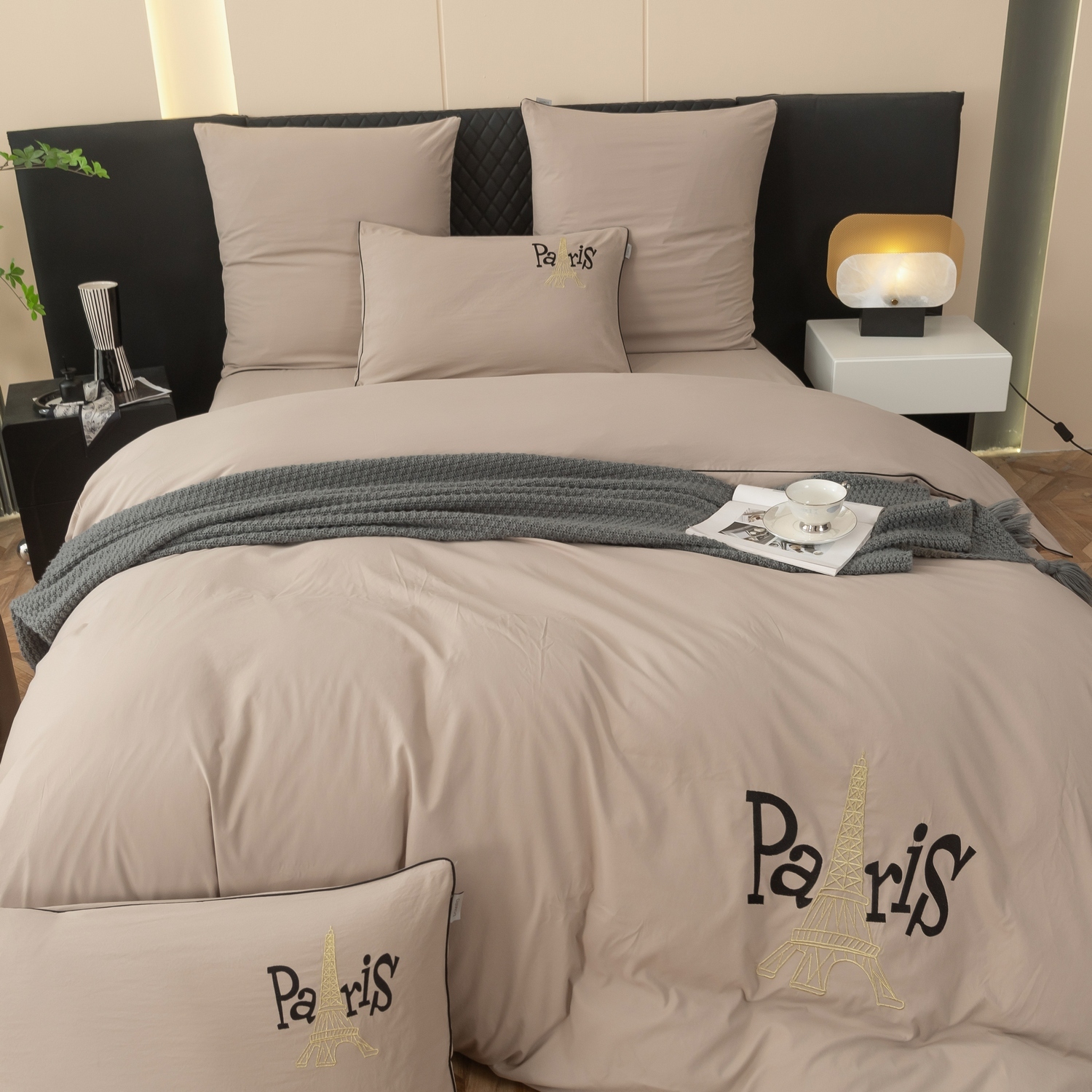 Дизайн дополняет элегантная вышивка с изображением Эйфелевой башни и надписью Paris, а изящный кант по периметру подчёркивает утончённость каждого комплекта.