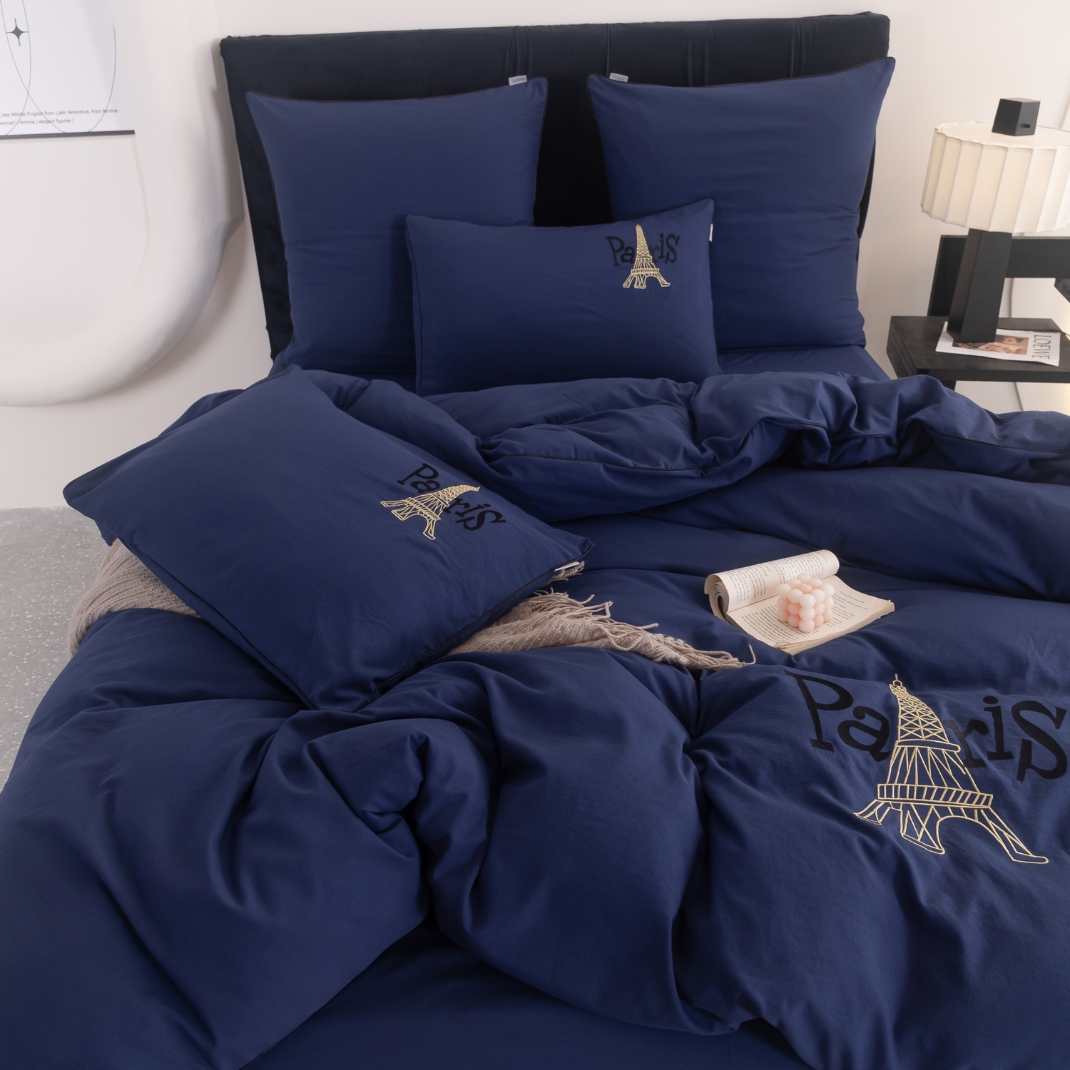 Дизайн дополняет элегантная вышивка с изображением Эйфелевой башни и надписью Paris, а изящный кант по периметру подчёркивает утончённость каждого комплекта.