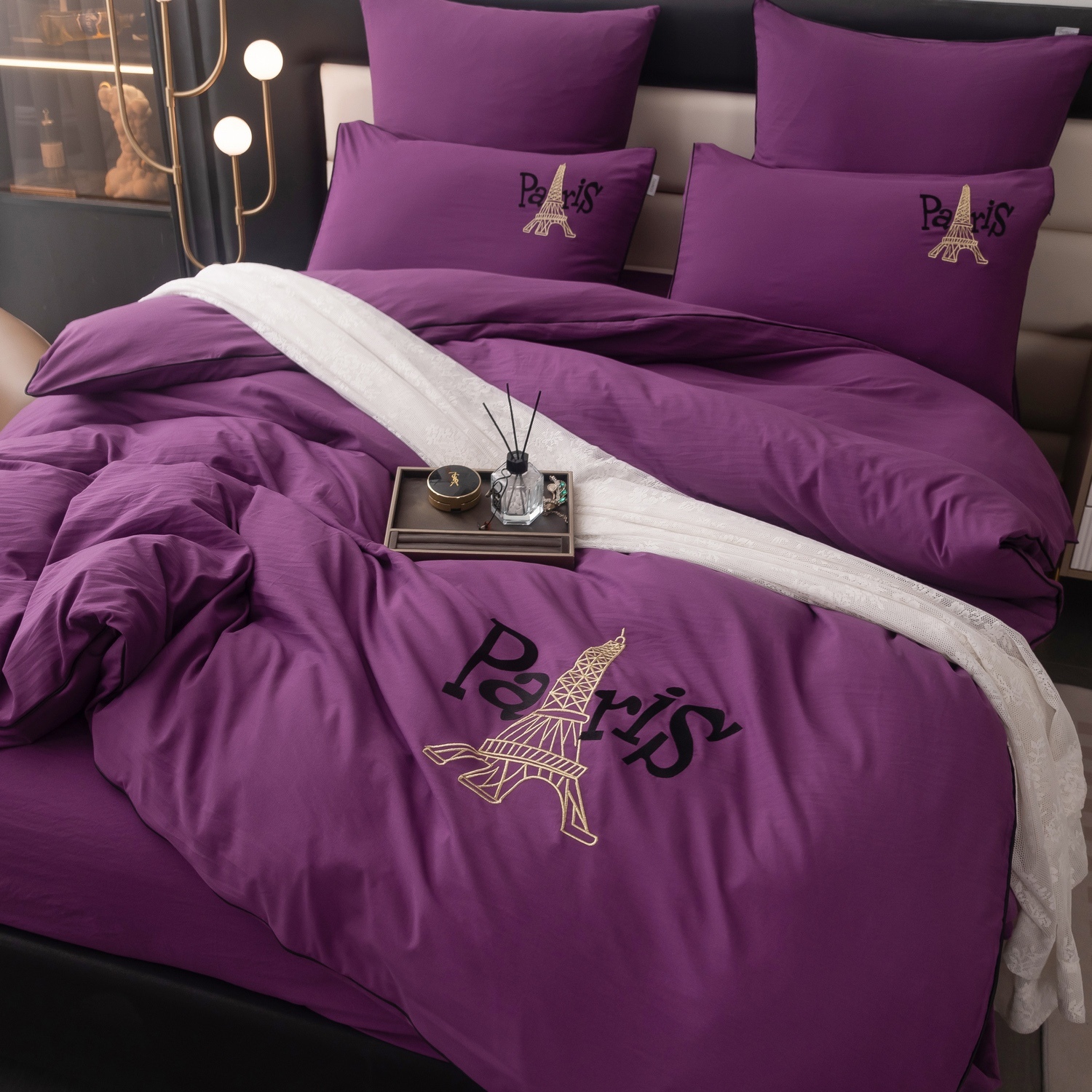 Дизайн дополняет элегантная вышивка с изображением Эйфелевой башни и надписью Paris, а изящный кант по периметру подчёркивает утончённость каждого комплекта.