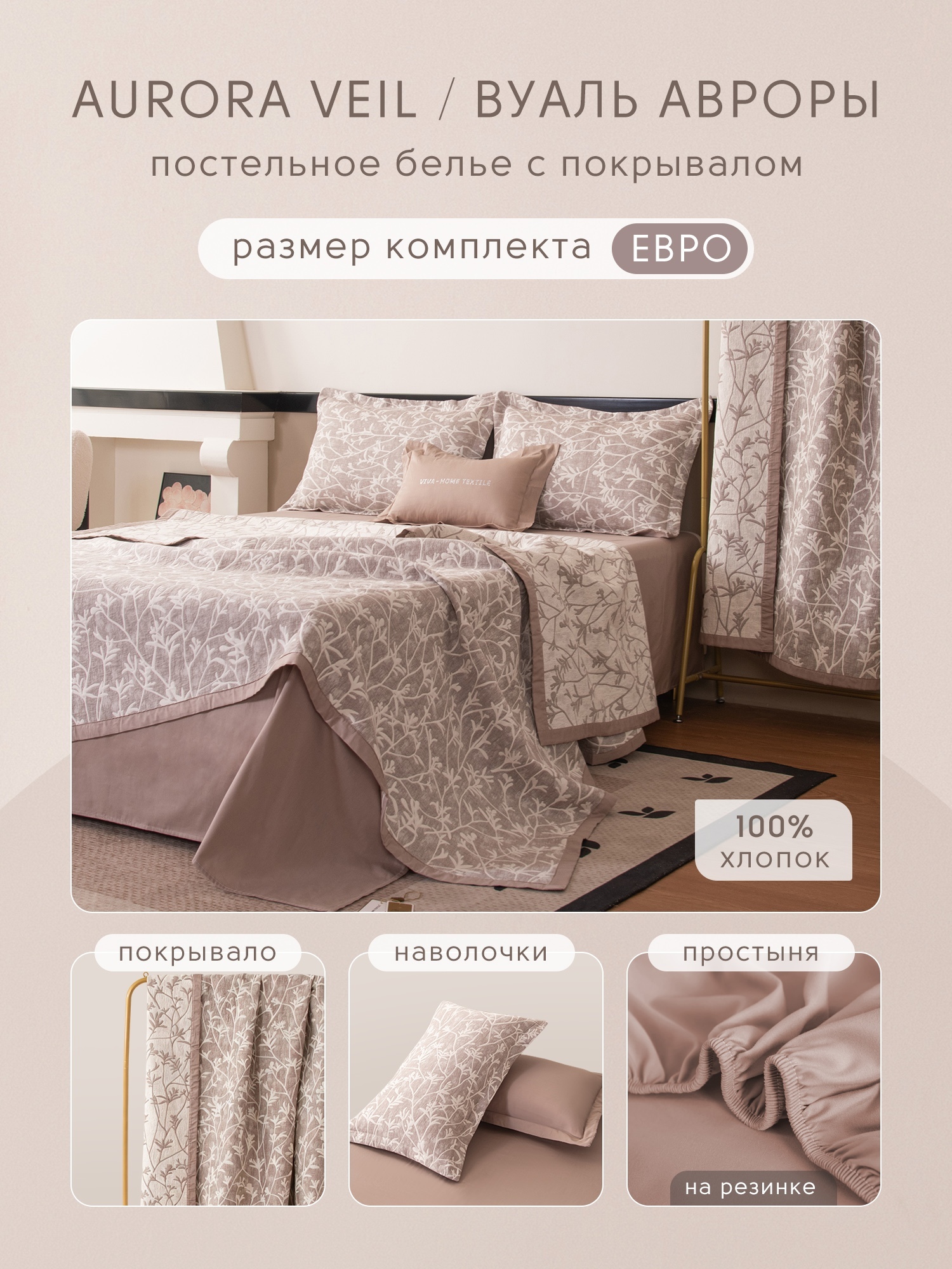 Комплект постельного белья на резинке Сатин Aurora Veil/Вуаль Авроры с Покрывалом AVR007