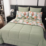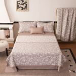 Особенность комплекта - наличие стёганого одеяла-покрывала, полностью готового к использованию. Вам не понадобится пододеяльник: одеяло сразу идёт в комплекте и идеально сочетается с постельным бельём, что делает уход за ним максимально удобным.