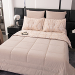 Особенность комплекта - наличие стёганого одеяла-покрывала, полностью готового к использованию. Вам не понадобится пододеяльник: одеяло сразу идёт в комплекте и идеально сочетается с постельным бельём, что делает уход за ним максимально удобным