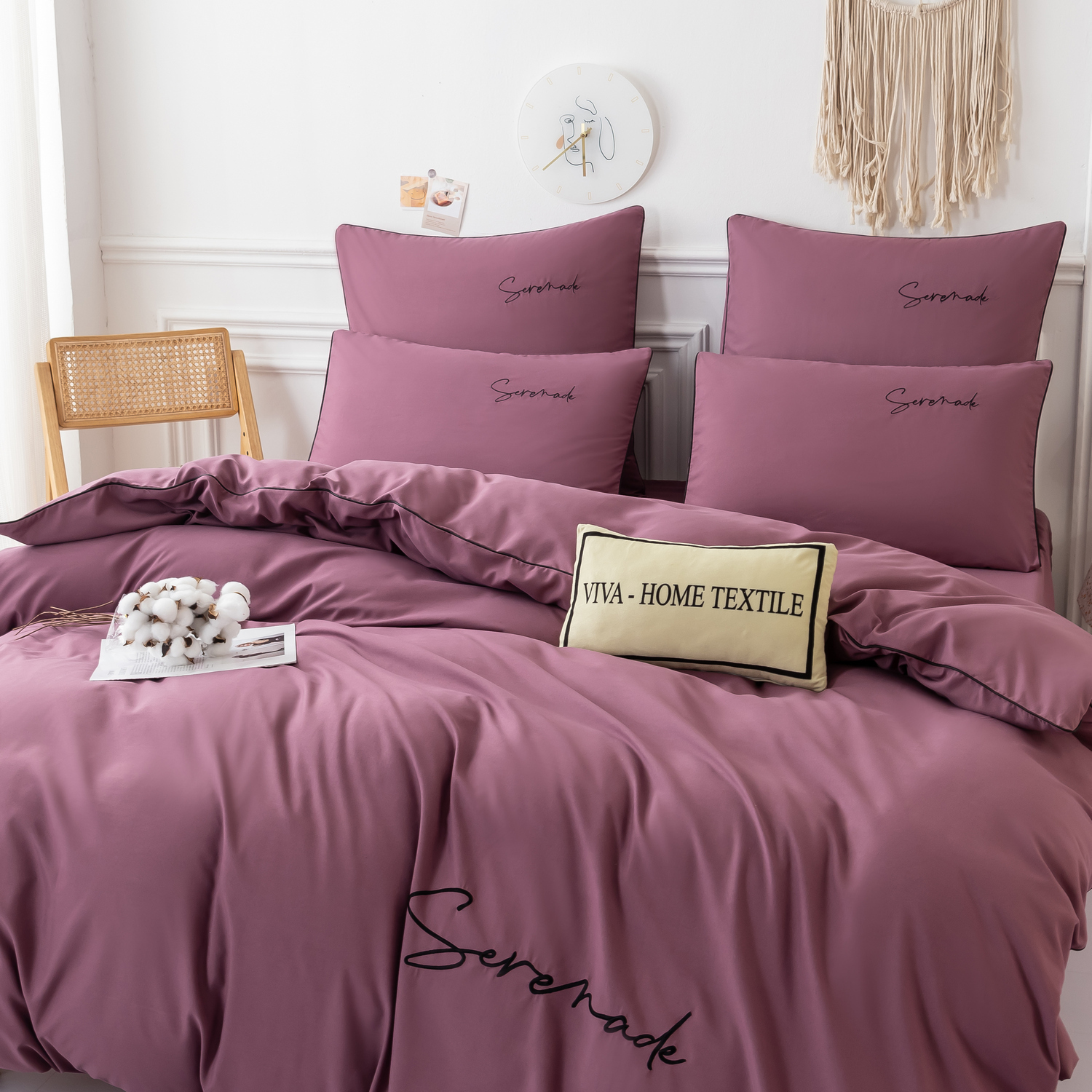 Пододеяльник и наволочки: Украшены вышивкой и кантом по периметру