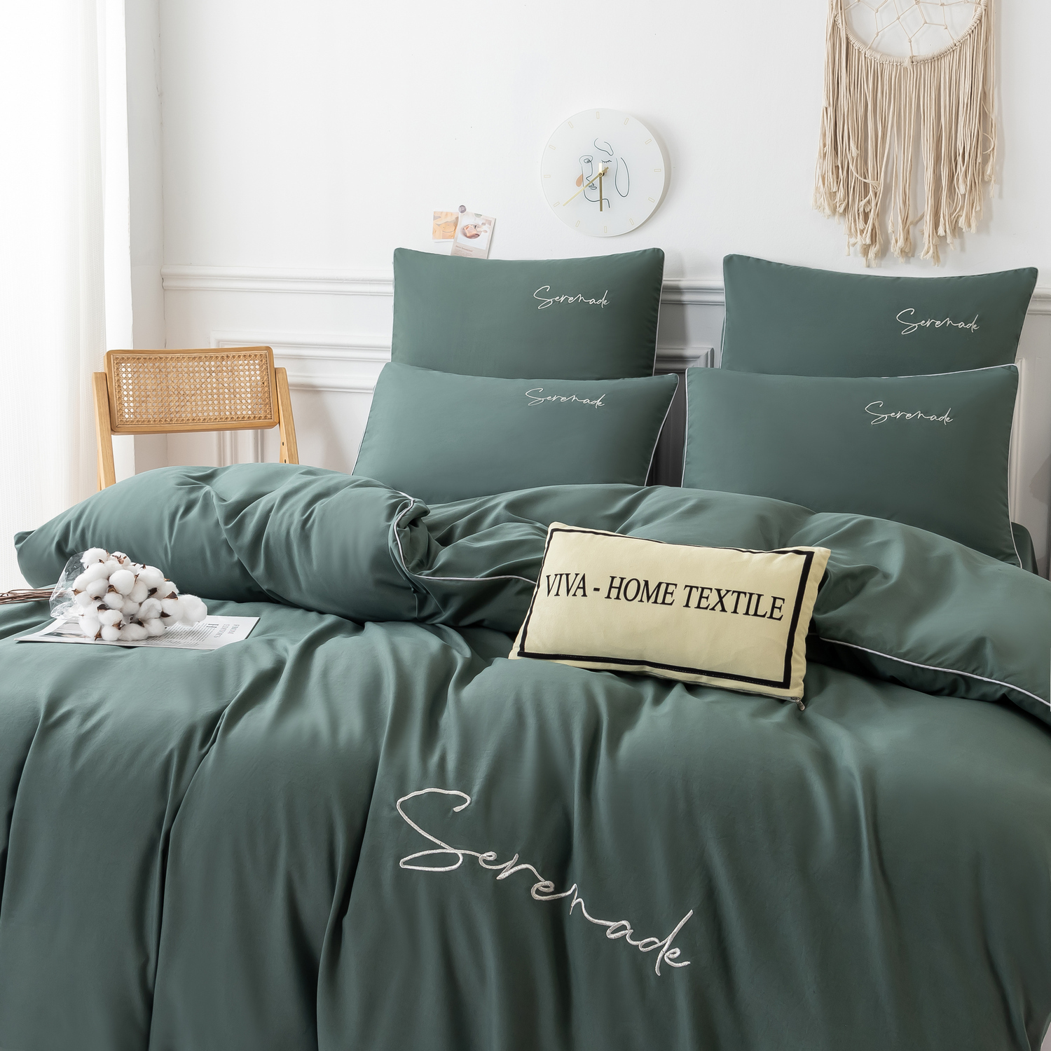 Пододеяльник и наволочки: Украшены вышивкой и кантом по периметру