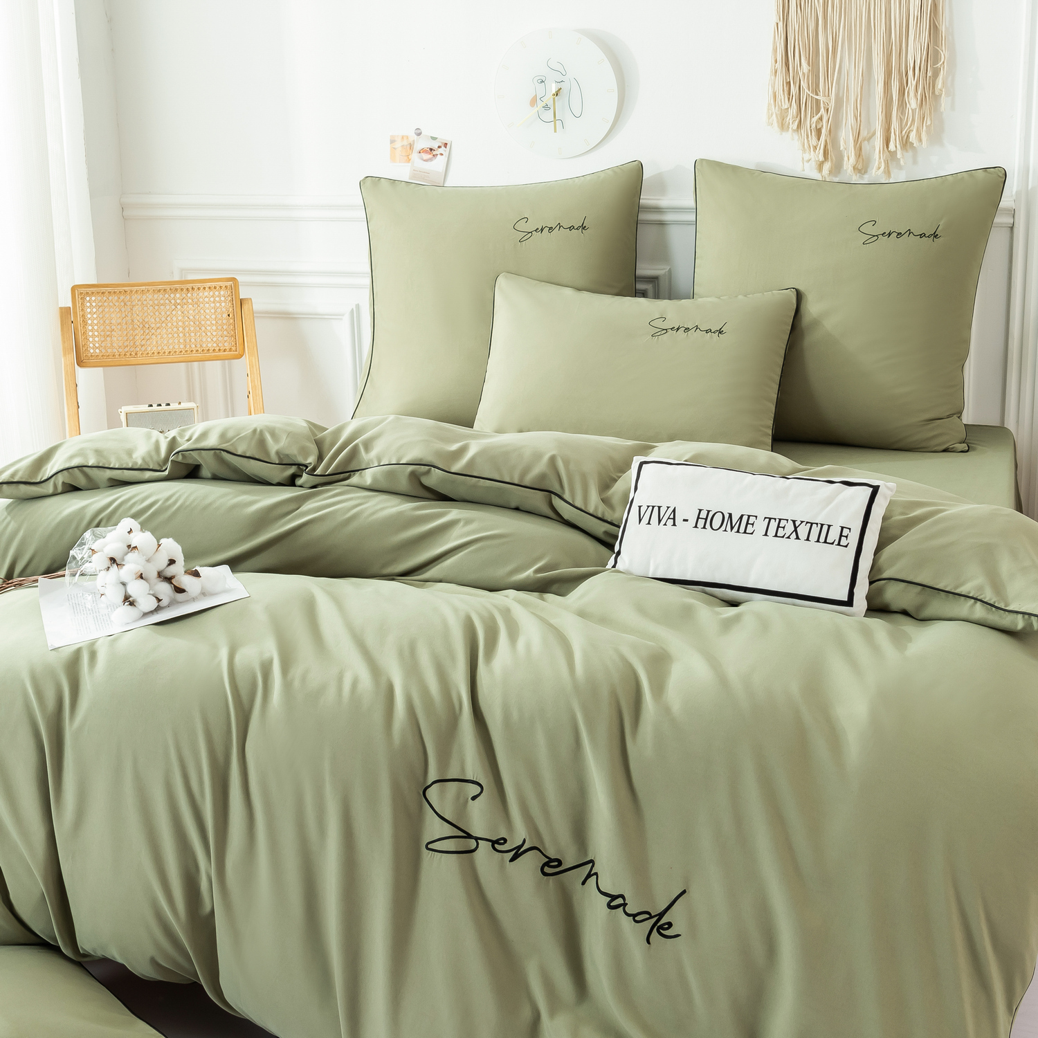 Пододеяльник и наволочки: Украшены вышивкой и кантом по периметру