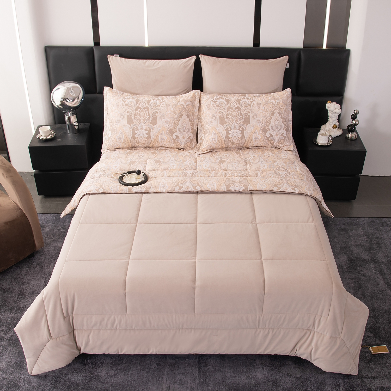 Данный комплект - это готовое решение для спальни, в котором красота, комфорт и практичность гармонично объединены.