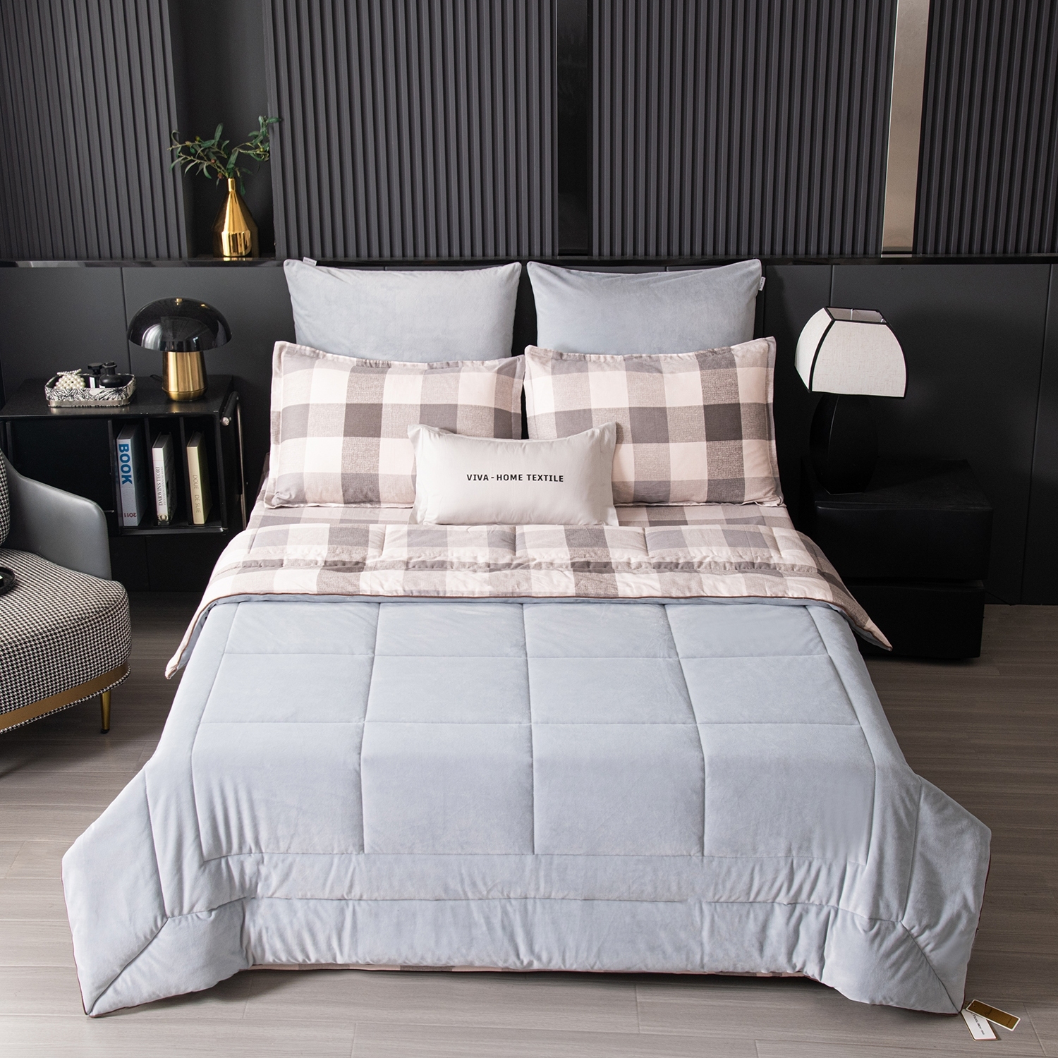 Одеяло выполнено с изысканной геометрической стёжкой и оформлено бархатным кантом. Верхняя сторона: мягкий велюр, придающий комплекту благородный вид и особую уютность, нижняя сторона: сатин из 100% хлопка, обеспечивающий естественную воздухопроницаемость и комфорт во время сна. Наполнитель: современное 100% эковолокно микрогель, лёгкое, гипоаллергенное и сохраняющее форму даже после многократных стирок. Зимой под таким одеялом тепло и уютно, а летом благодаря отличной циркуляции воздуха не будет жарко.