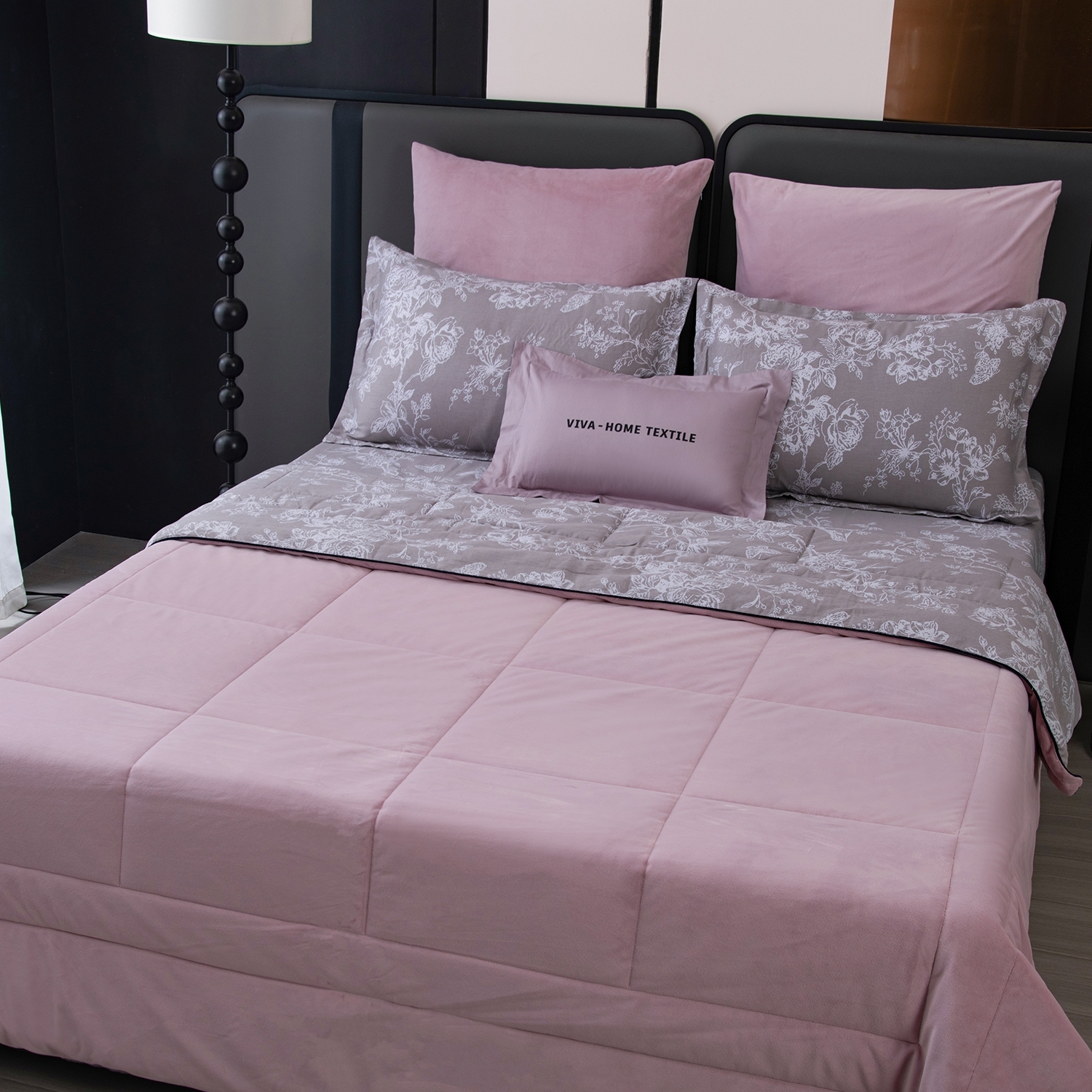 Одеяло выполнено с изысканной геометрической стёжкой и оформлено бархатным кантом. Верхняя сторона: мягкий велюр, придающий комплекту благородный вид и особую уютность, нижняя сторона: сатин из 100% хлопка, обеспечивающий естественную воздухопроницаемость и комфорт во время сна. Наполнитель: современное 100% эковолокно микрогель, лёгкое, гипоаллергенное и сохраняющее форму даже после многократных стирок. Зимой под таким одеялом тепло и уютно, а летом благодаря отличной циркуляции воздуха не будет жарко.