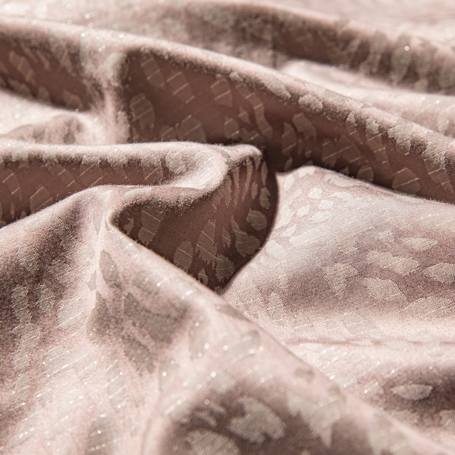Жаккард из 100% хлопка, сотканный на специальных станках, впечатляет сложным рельефным рисунком. В переплетении используются тонкие золотые нити, которые мягко играют на свету, создавая мерцающий эффект, глубину узора и ощущение изысканной роскоши. Такой текстиль выглядит статусно и подчёркивает индивидуальность интерьера.