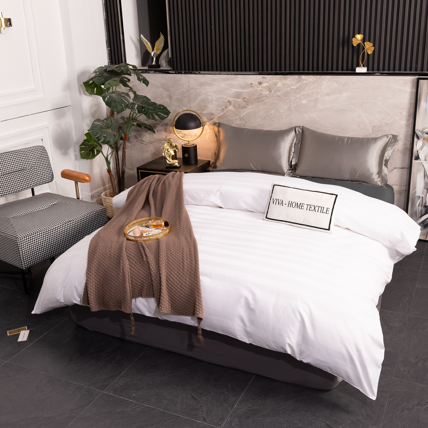 Постельные принадлежности из Страйп Сатина пользуются популярностью благодаря минималистическому стилю, напоминающему белье в номере дорогой гостиницы.