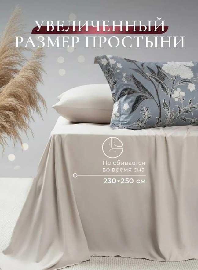 -Увеличенный размер простыни 230х250 всегда имеет опрятный внешний вид.