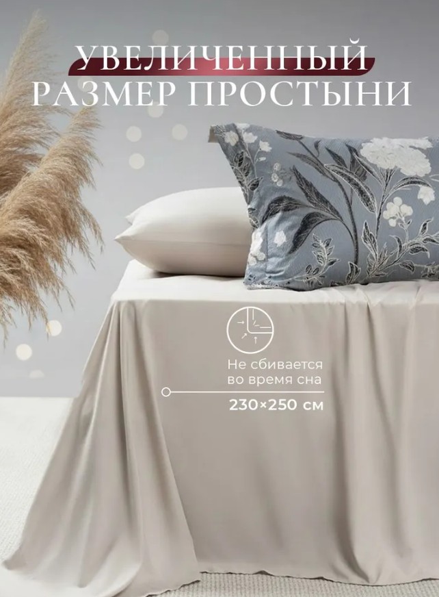 -Увеличенный размер простыни 230х250 всегда имеет опрятный внешний вид.