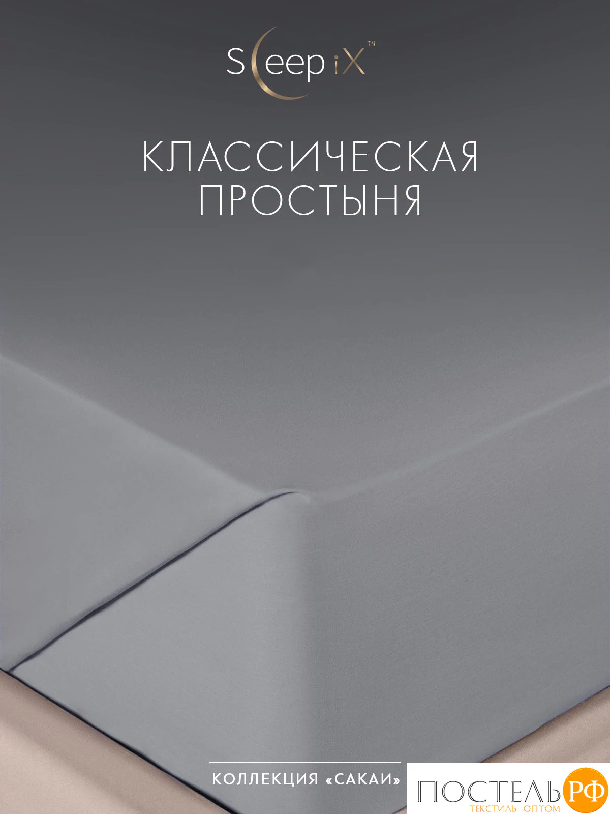 SleepiX САКАИ сер Простыня 180х220, 1 пр, хл