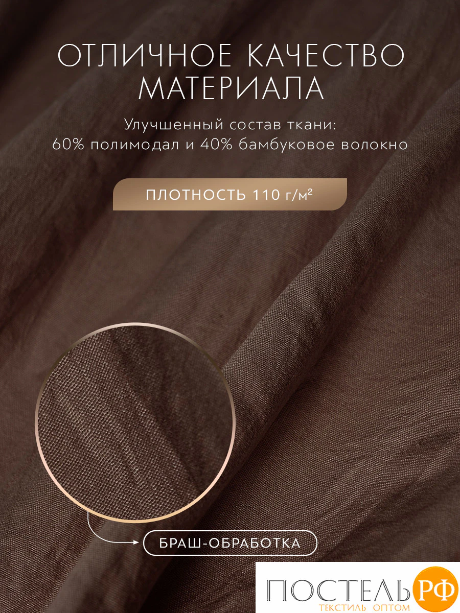 Смесовый материал с "браш" обработкой из разного вида целлюлозы делает постельное белье более тактильным, нежным и износоустойчивым.