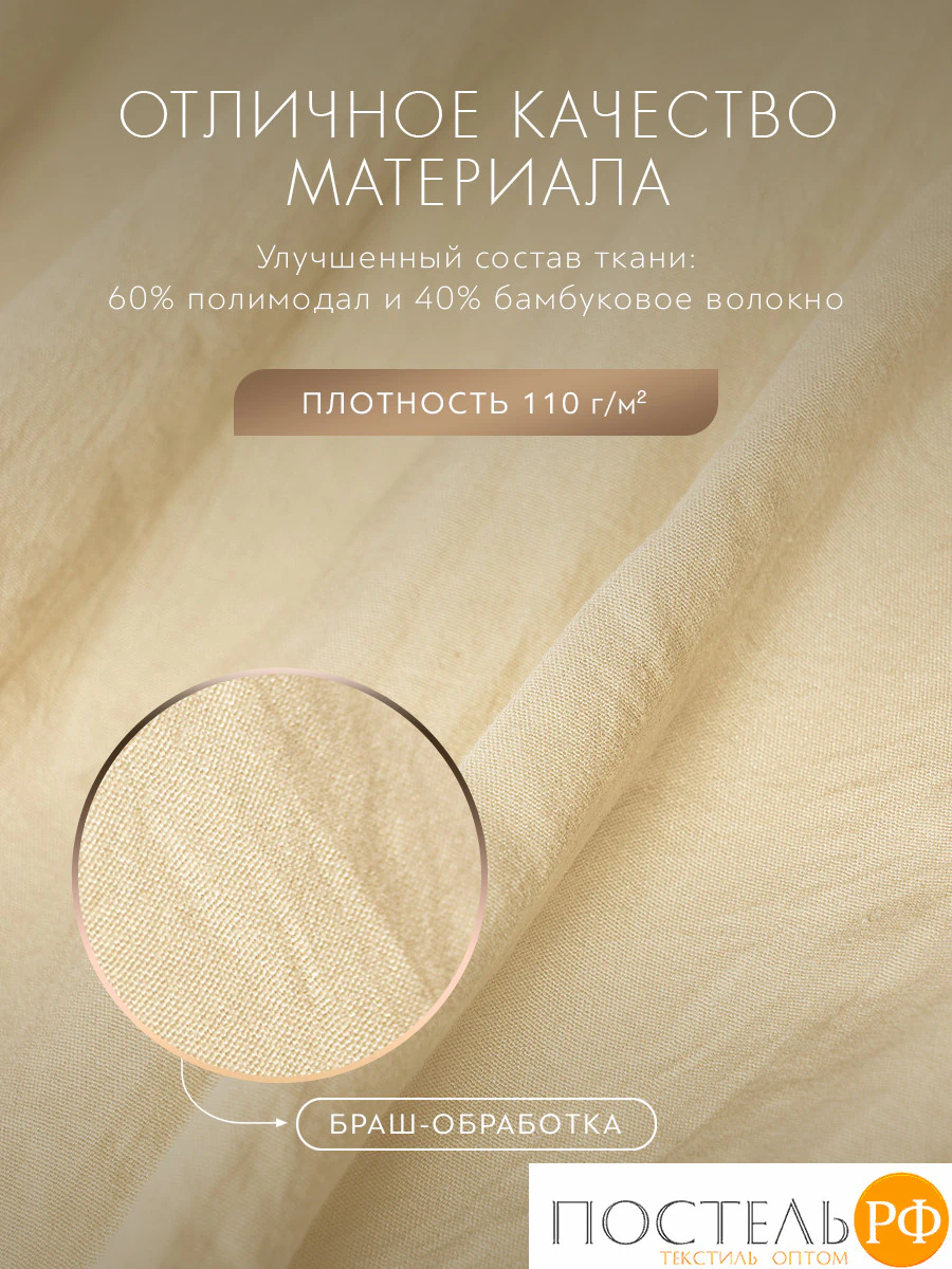Смесовый материал с "браш" обработкой из разного вида целлюлозы делает постельное белье более тактильным, нежным и износоустойчивым.