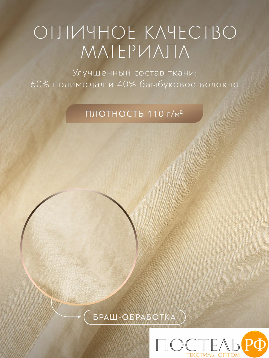 Смесовый материал с "браш" обработкой из разного вида целлюлозы делает постельное белье более тактильным, нежным и износоустойчивым.