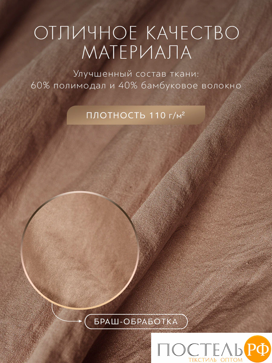 Смесовый материал с "браш" обработкой из разного вида целлюлозы делает постельное белье более тактильным, нежным и износоустойчивым.