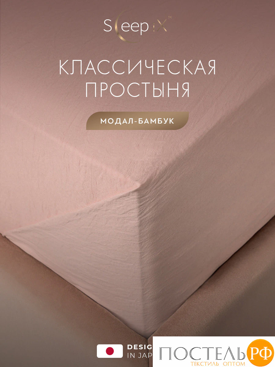 SleepiX ЮКО роз Простыня 230х250, 1пр., 60%полимодал, 40%бамб. волокно