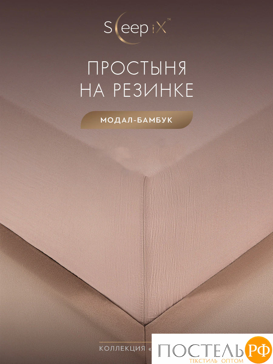 SleepiX ЮКО роз Простыня на резинке 160х200+25, 1пр., 60%полимодал, 40%бамб. волокно