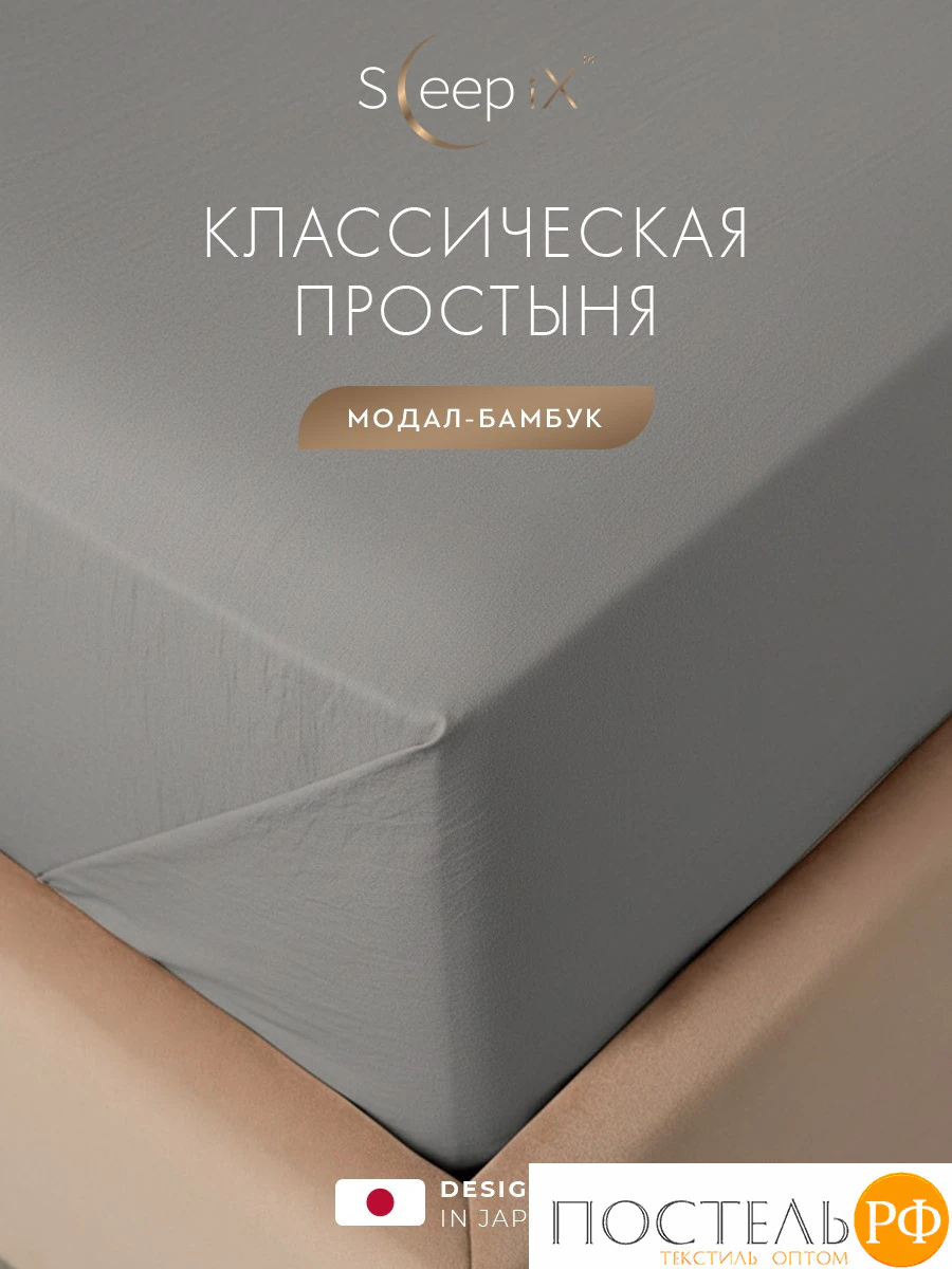 SleepiX Юко сер. Простыня 200х220, 1пр., 60%полимодал, 40%бамб. волокно
