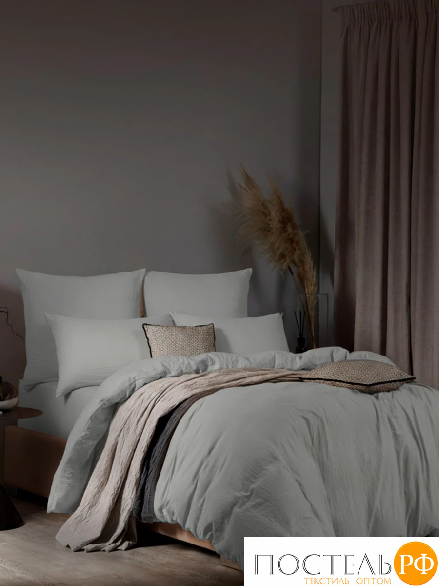 Легкий жатый эффект ткани облегчает уход за постельным бельем и практически исключает необходимость глажки после стирки.