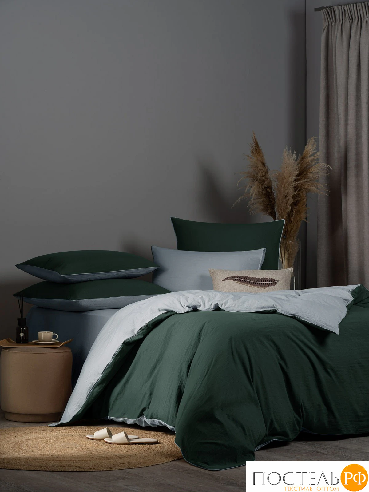 Особые детали: Двустороннее, Наволочки с застёжкой на запах, Жатый эффект, Декоративный кант