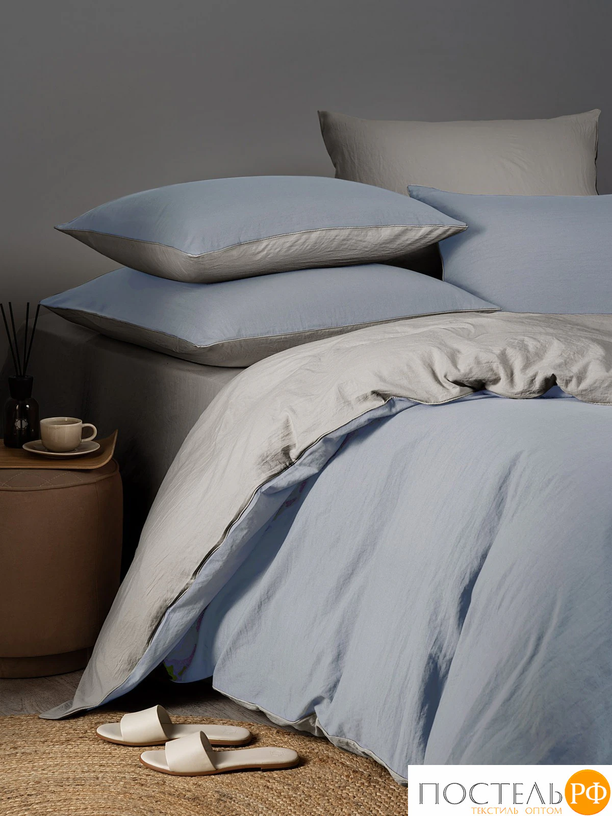 Особые детали: Двустороннее, Наволочки с застёжкой на запах, Жатый эффект, Декоративный кант