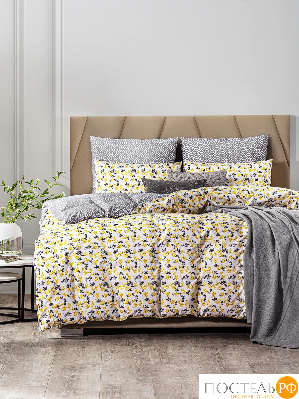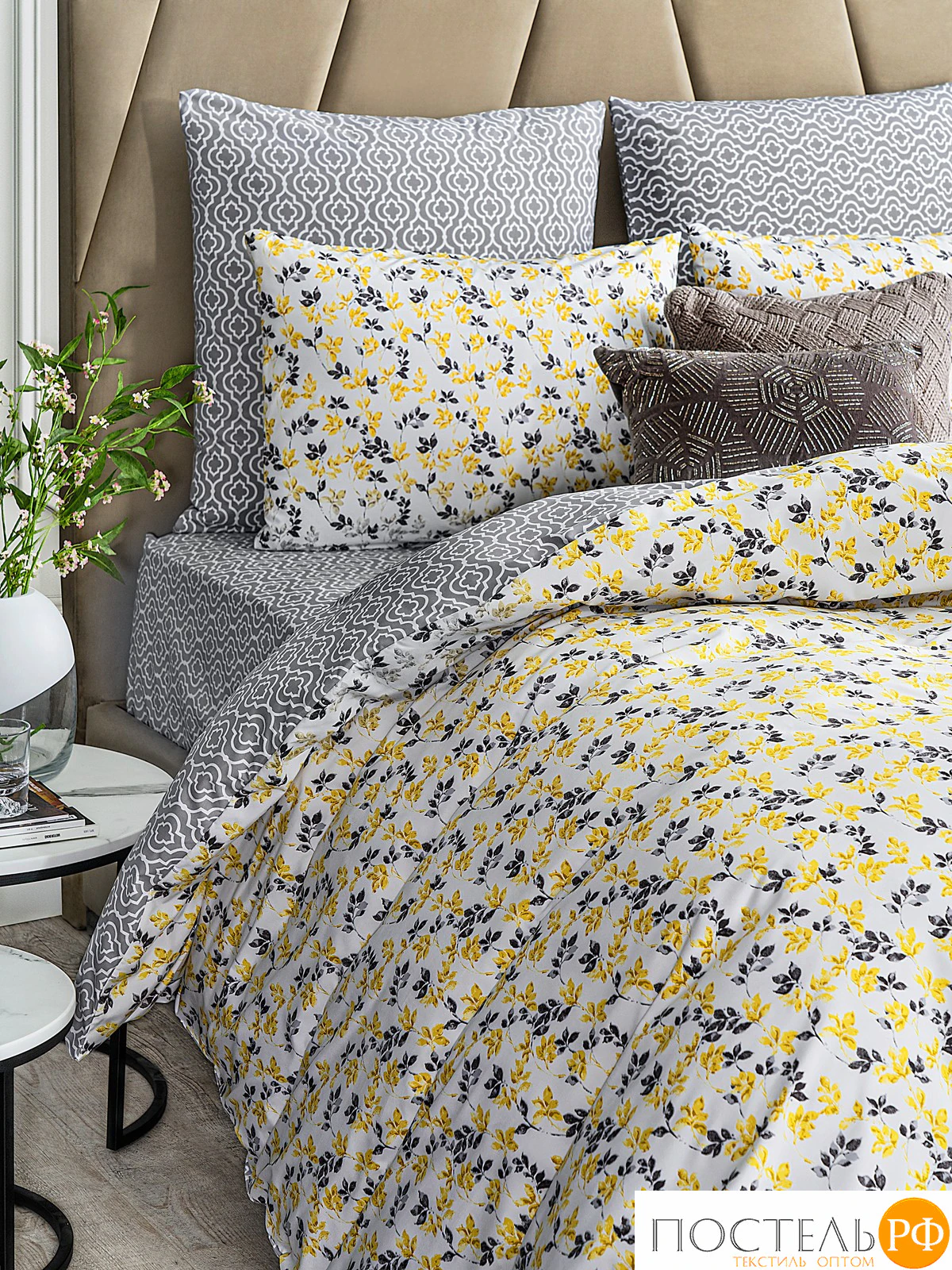Постельное белье Амаль выполнено в ярких цветах с изысканным цветочным узором, где желтые и серые листья на белом фоне создают свежую и жизнеутверждающую атмосферу. Основная текстура с мелкими растительными элементами придает комплекту легкость и элегантность. Ткань-компаньон с геометрическим узором в серых тонах гармонично дополняет общий дизайн, добавляя интерес и стиль. Такой набор идеально подойдет для современных интерьеров, привнося нотки радости и весеннего настроения. Яркие цвета и выразительный дизайн способствуют созданию уютной атмосферы, обеспечивая комфортный отдых и расслабление. Этот комплект станет стильным акцентом в вашем интерьере, подчеркивая вашу индивидуальность и любовь к ярким деталям.