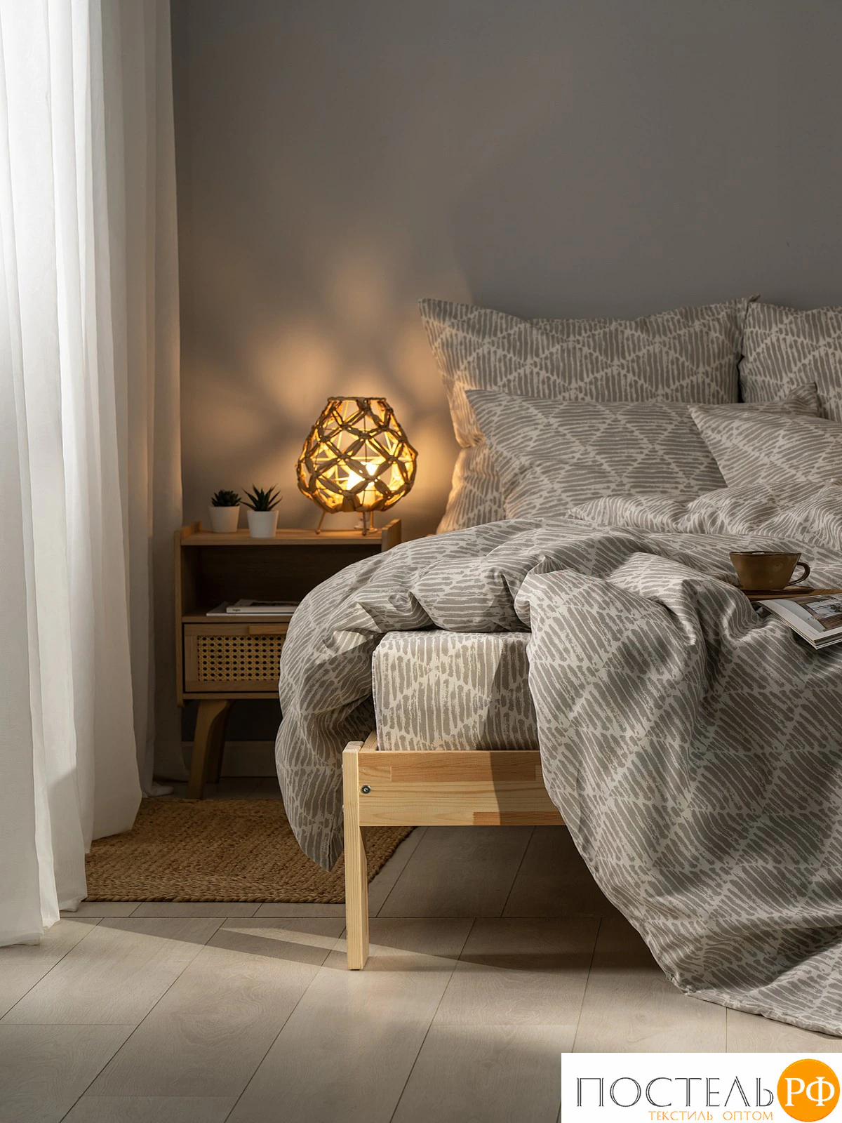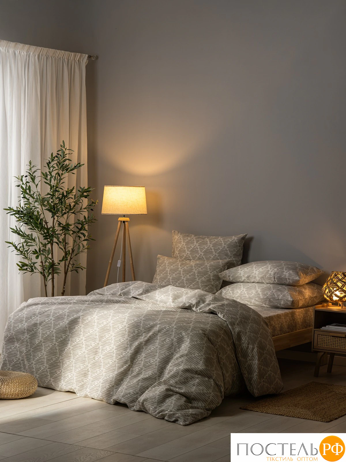 Комплектация постельного белья: Пододеяльник на молнии 200х215 - 1 шт, простыня на резинке 160х200х25 - 1 шт, наволочки на запах 50х70 - 2 шт