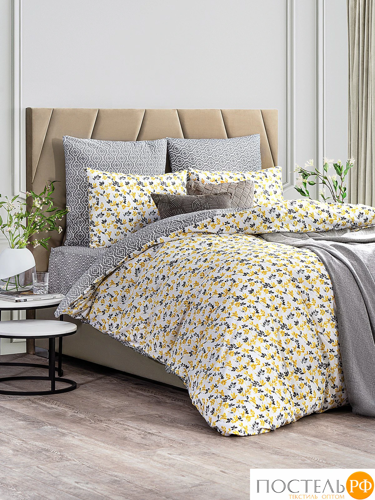 Постельное белье Амаль выполнено в ярких цветах с изысканным цветочным узором, где желтые и серые листья на белом фоне создают свежую и жизнеутверждающую атмосферу. Основная текстура с мелкими растительными элементами придает комплекту легкость и элегантность. Ткань-компаньон с геометрическим узором в серых тонах гармонично дополняет общий дизайн, добавляя интерес и стиль. Такой набор идеально подойдет для современных интерьеров, привнося нотки радости и весеннего настроения. Яркие цвета и выразительный дизайн способствуют созданию уютной атмосферы, обеспечивая комфортный отдых и расслабление. Этот комплект станет стильным акцентом в вашем интерьере, подчеркивая вашу индивидуальность и любовь к ярким деталям.