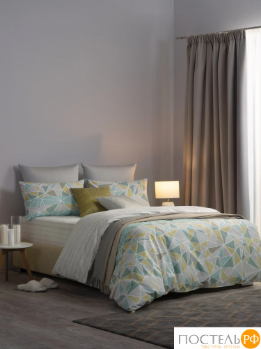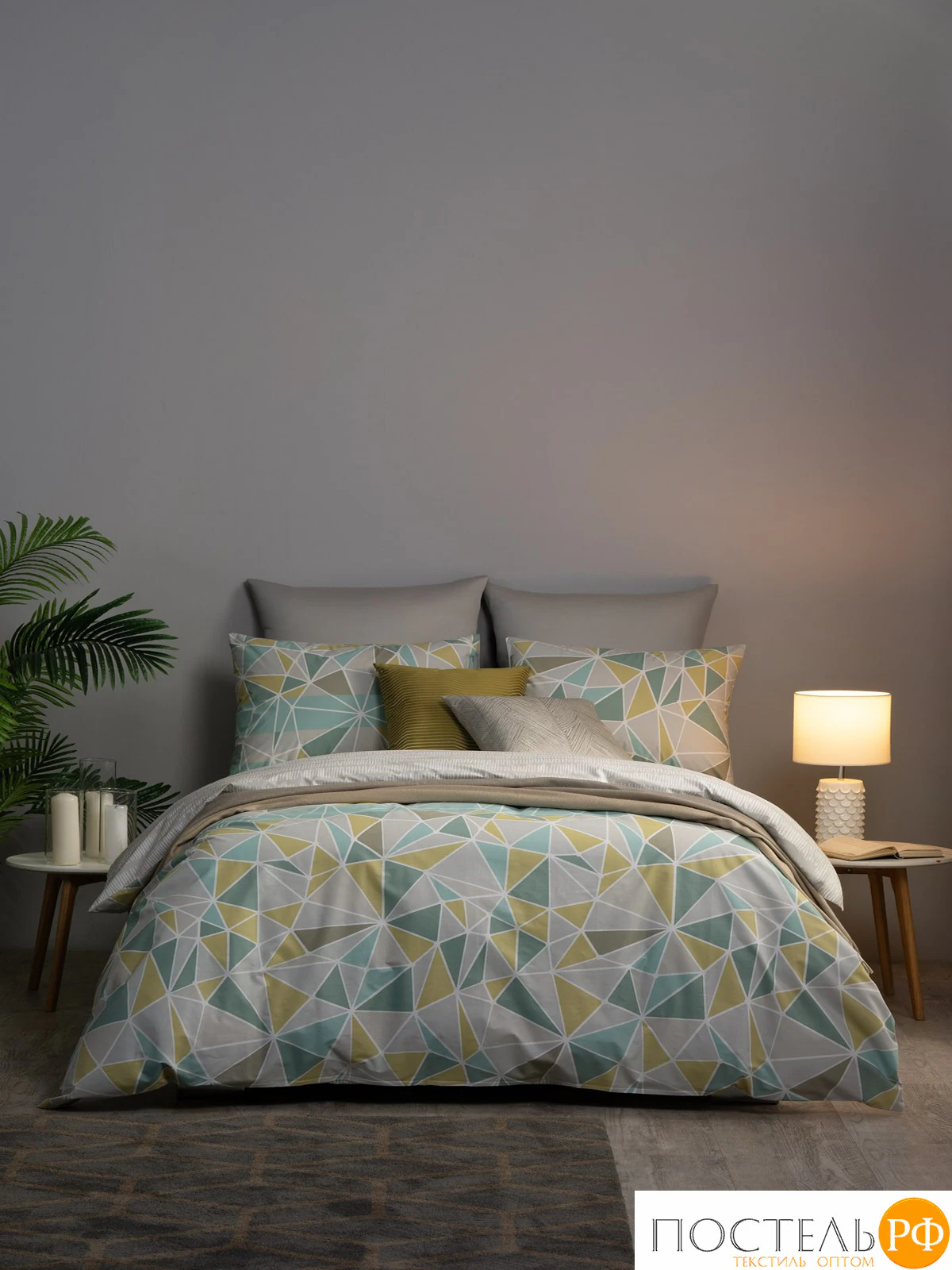Двусторонний дизайн постельного белья позволяет легко менять облик спальни по вашему желанию. Комплект выделяется своим ярким и современным дизайном. Основной узор состоит из геометрических фигур пастельных оттенков, которые создают динамичную композицию и придают комплекту свежесть и легкость. Дополнительные детали в виде белых линий на ткани-компаньон добавляют текстурности и глубины. Этот дизайн вызывает ассоциации с природой и современными архитектурными формами, что способствует ощущению гармонии и вдохновения в пространстве. Такой комплект идеально подойдет для интерьеров в стиле скандинавского минимализма или современного дизайна, где важны простота и функциональность. Он станет отличным акцентом, подчеркивающим индивидуальность интерьера и привносящим нотки свежести и креативности.