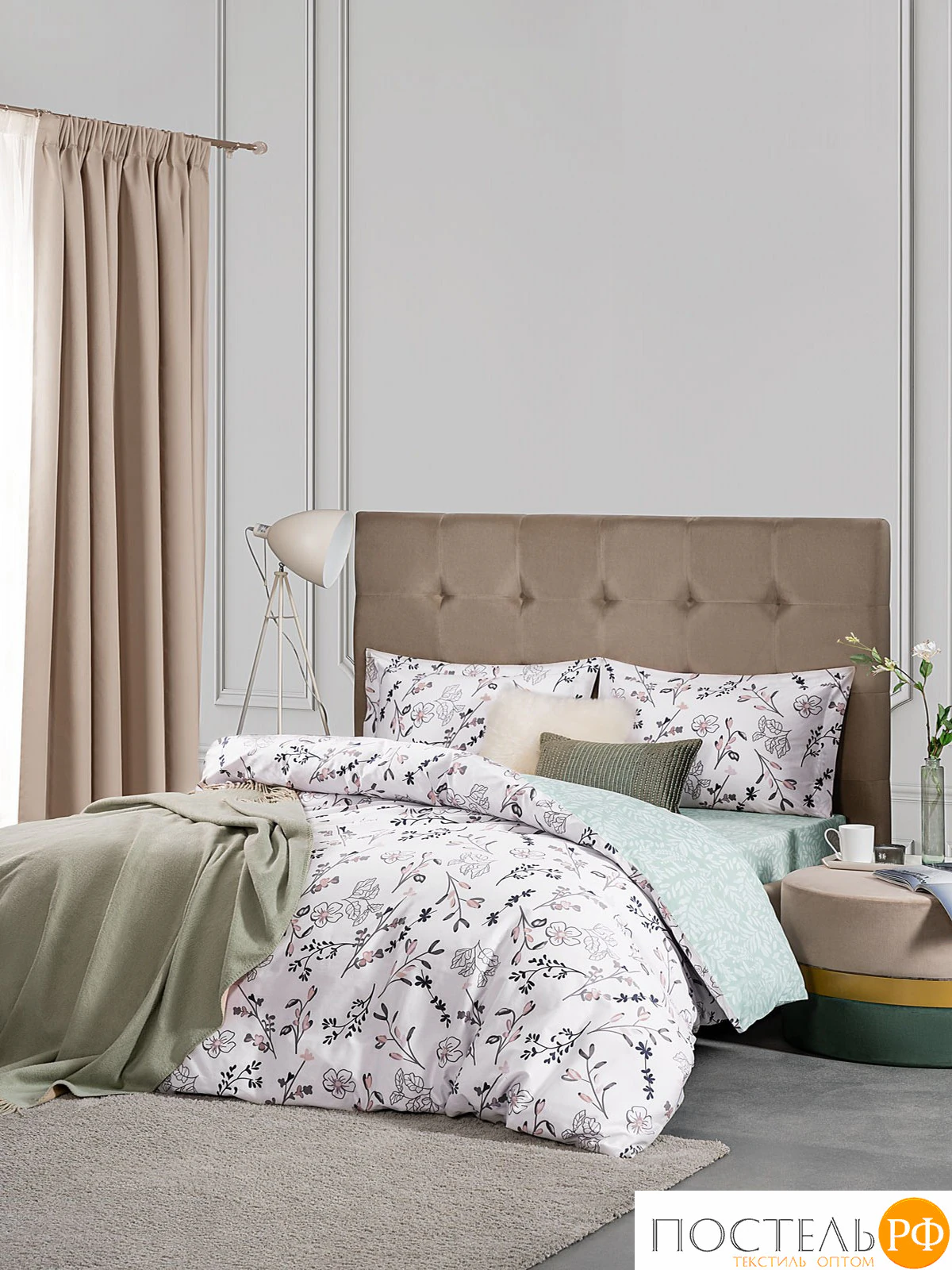 Двусторонний дизайн позволяет легко изменять облик вашей спальни, а застёжка пододеяльника на молнии делает использование комплекта более удобным. Этот комплект постельного белья привлекает внимание своим стильным и изящным дизайном. Нежный мятный фон создает уютную атмосферу, а цветочные мотивы в черно-белых тонах с яркими акцентами придают комплекту свежесть и оригинальность. Такой комплект идеально впишется в интерьеры в стиле скандинавского минимализма или прованс, добавляя в них нотки легкости и романтики. Он станет отличным выбором для создания теплой и комфортной обстановки в вашей спальне, где каждый сон будет приносить вдохновение и покой.