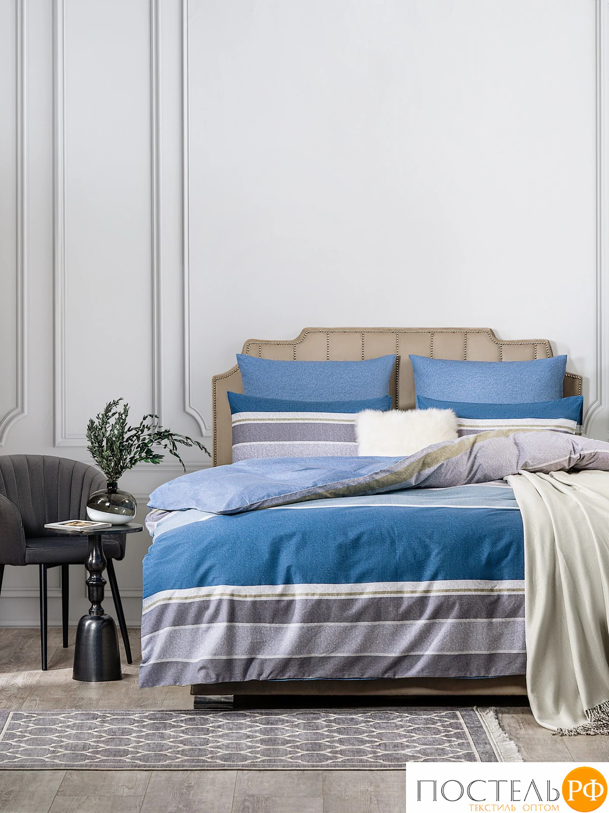 Постельное белье Марлин выделяется своим стильным и современным дизайном. Комплект выполнен в гармоничных оттенках синего и серого, что создаёт уютную атмосферу в вашей спальне. Принт включает в себя широкие горизонтальные полосы, чередующиеся с более тонкими линиями, которые добавляют динамичности и текстурности. Полосы выполнены в различных оттенках: от светлого до темного синего, а также серого, что создает эффект многослойности и глубины. Такой дизайн идеально подходит для интерьеров в скандинавском или современном стиле, придавая помещению свежесть и элегантность. Постельное белье ESTIA станет отличным акцентом в вашей спальне, обеспечивая комфорт и стиль.
