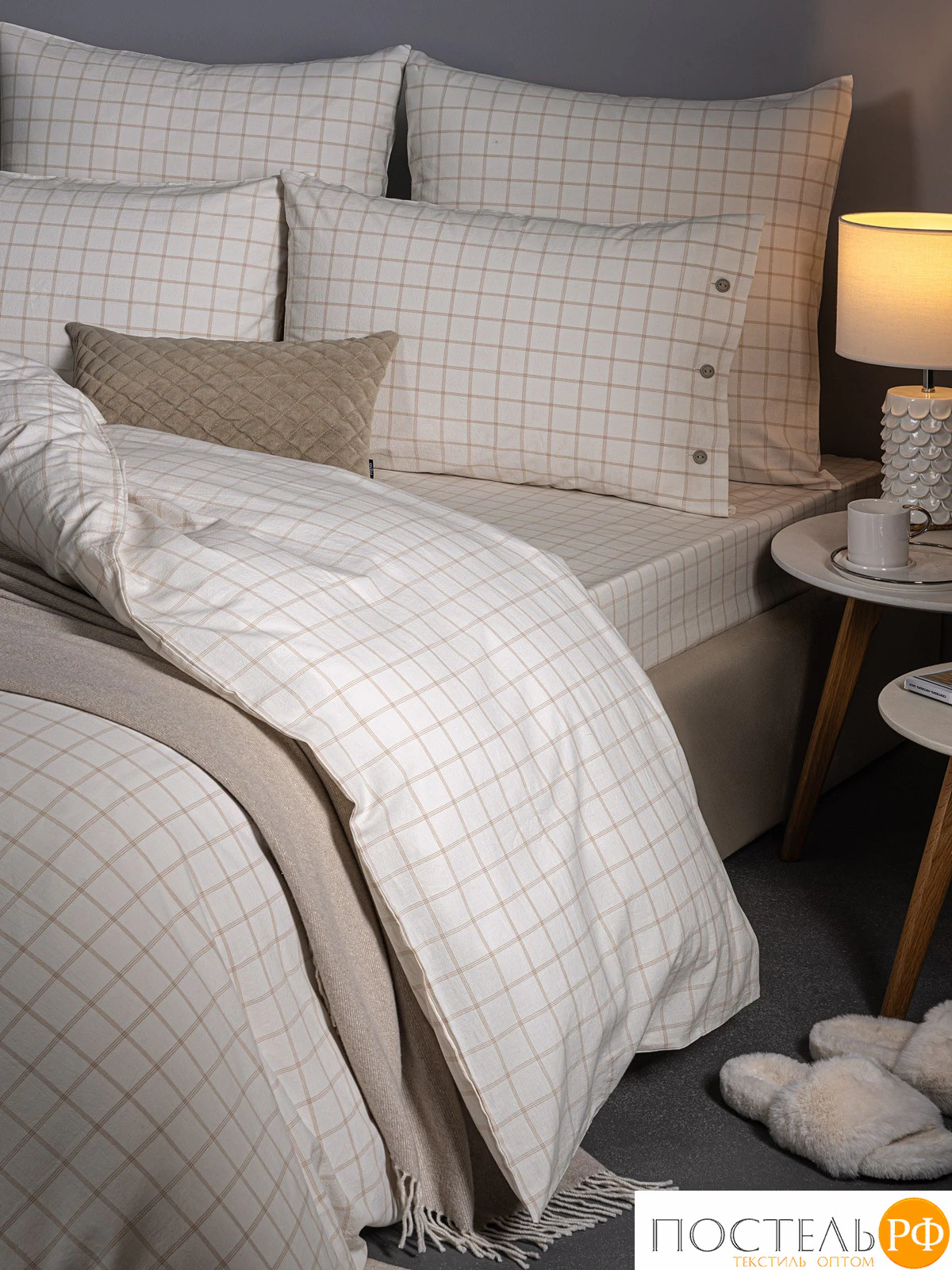 Постельное белье Вальбо в нежных бежево-белых тонах с клетчатым узором создает атмосферу уюта и тепла в вашей спальне. Клетчатый принт добавляет текстуры и визуального интереса, при этом оставаясь ненавязчивым. Нежные оттенки бежевого и теплого белого способствуют расслаблению и спокойствию, создавая идеальные условия для отдыха. Такой комплект идеально подходит для интерьеров в скандинавском, прованс или современном минимализме, придавая пространству уют и завершенность. Он станет прекрасным выбором для создания гармоничной атмосферы, в которой приятно проводить время и отдыхать.