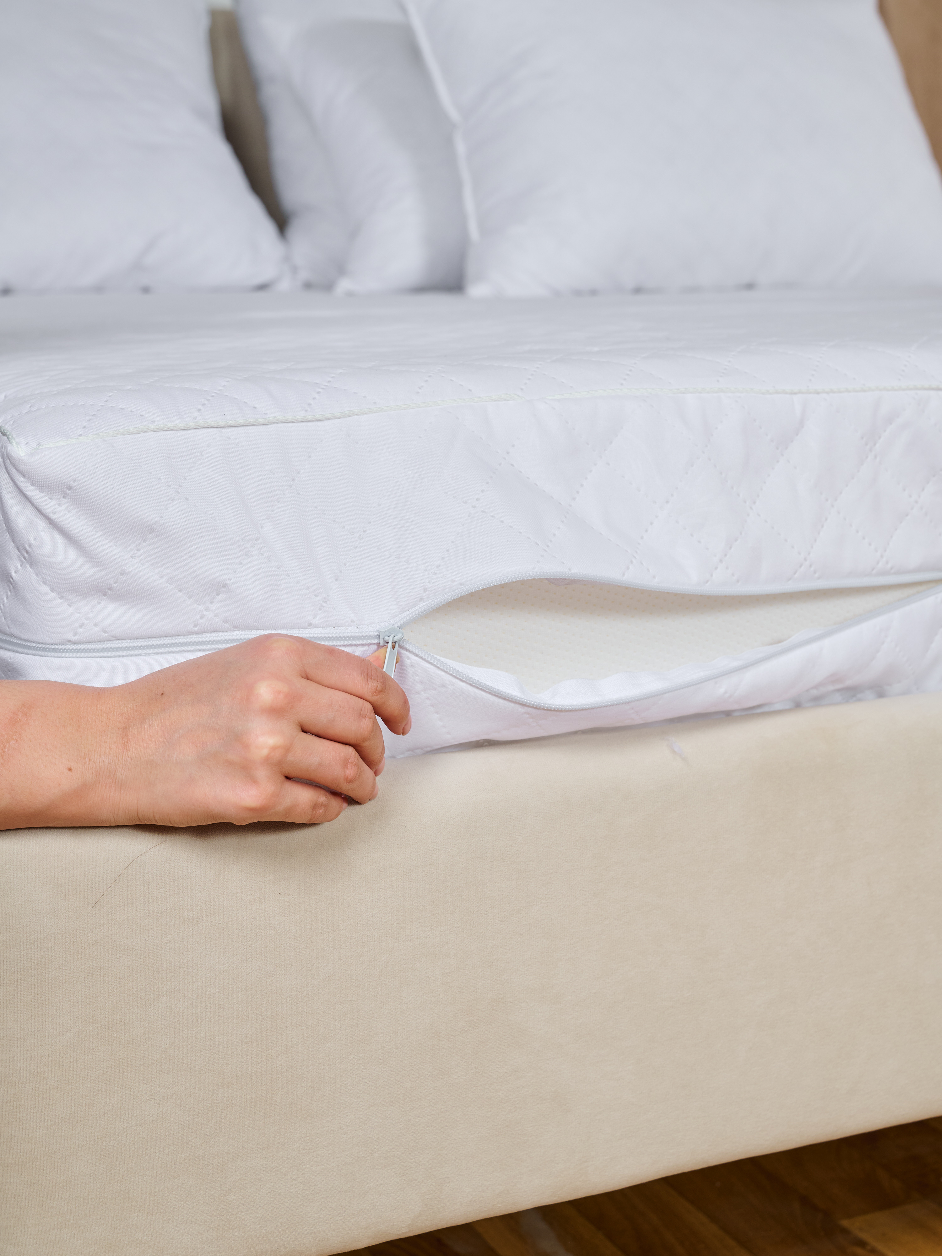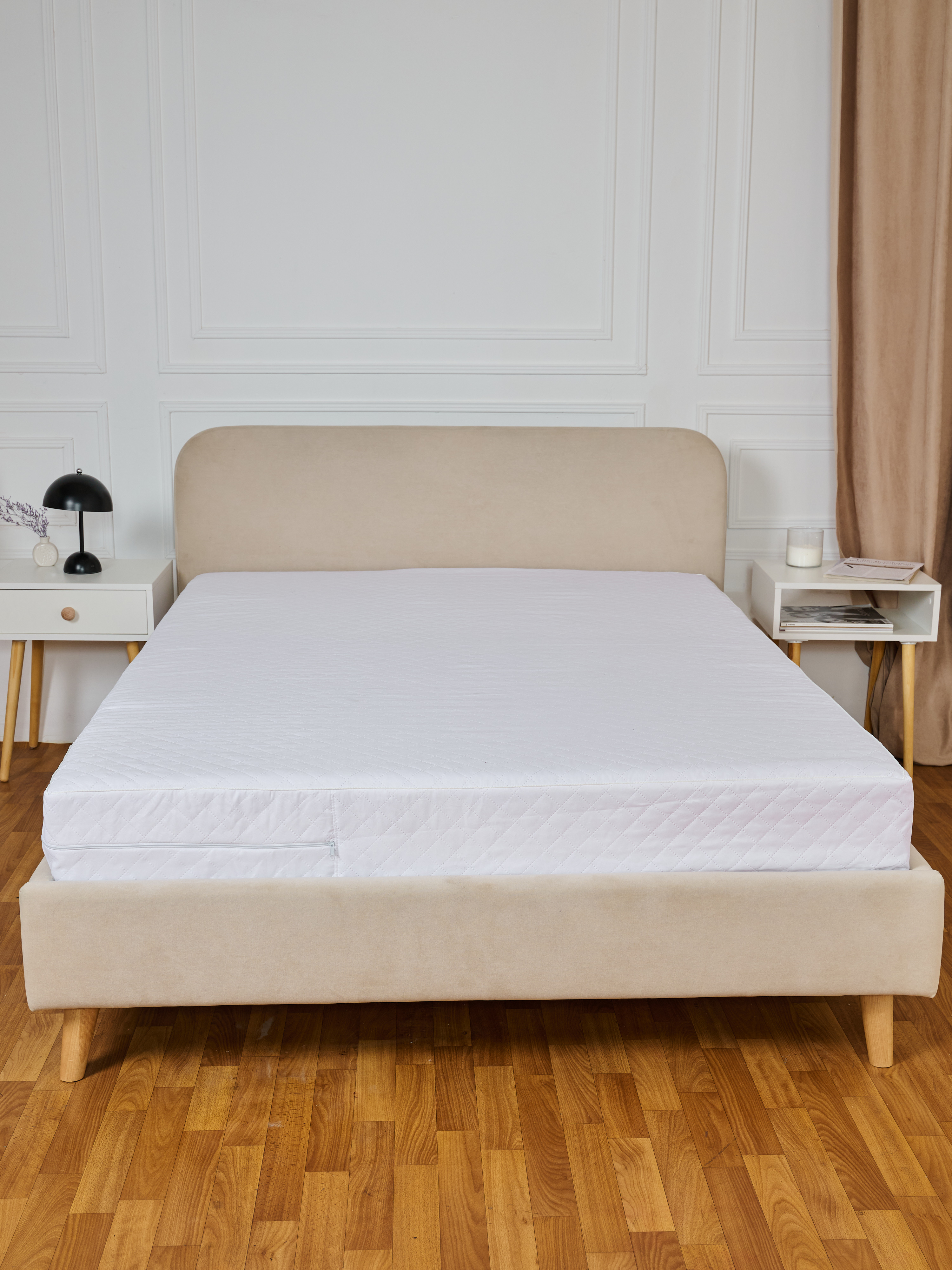Защитный чехол для матраса. Предназначен для сохранения физических и эстетических свойств поверхности матраса и увеличения общего срока службы изделия. Чехол выполнен из качественного современного материала "микрофибра" в сочетании с экологичным наполнителем - синтепон. Благодаря уникальной технологии стежки, наполнитель равномерно распределен по всей основной поверхности, за счет чего достигается повышенный уровень комфорта, при отдыхе и полностью исключается вероятность "сваливания" наполнителя в чехле. Для удобства ухода за изделием, чехол имеет застежку на молнию.