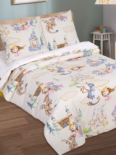 КПБ поплин 1,5 сп. с 1 нав. 70*70 с детским рисунком (молния) - Воздушный замок