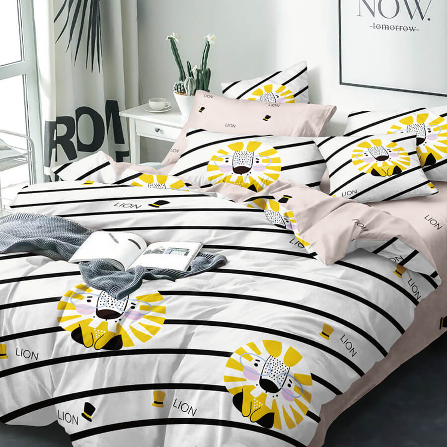 Комплекты постельного белья из поплина отшиваются с наволочками в количестве 2 штук, имеют застежку - молния на пододеяльнике и наволочках, упаковываются в прозрачный пакет ПВХ и комплектуются картонным вкладышем с ярким печатным изображением.