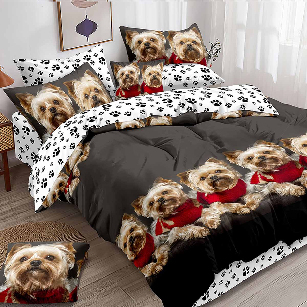 Комплекты постельного белья из поплина отшиваются с наволочками в количестве 2 штук, имеют застежку - молния на пододеяльнике и наволочках, упаковываются в прозрачный пакет ПВХ и комплектуются картонным вкладышем с ярким печатным изображением.