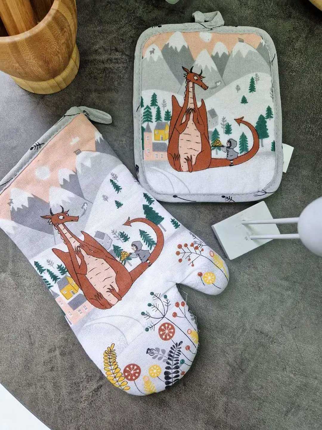 Набор рукавица и прихватка - Дракон