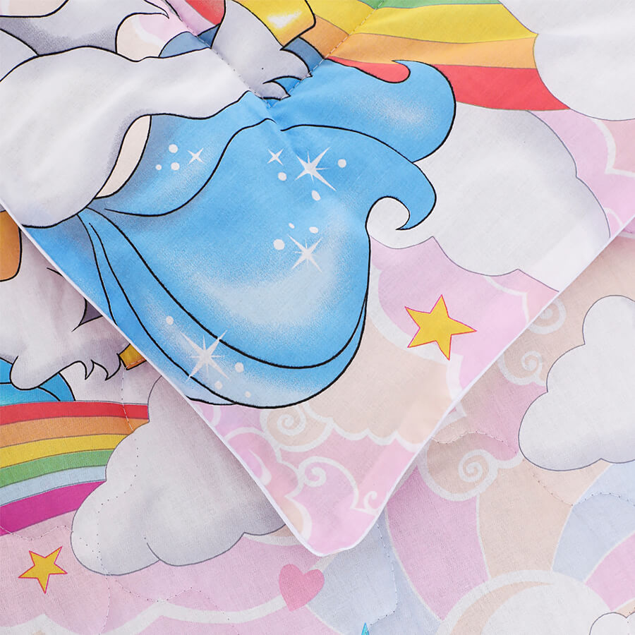 Легкое детское одеяло из натуральной хлопковой ткани с современным антиаллергенным силиконизированным наполнителем подарит крепкий и спокойный сон вашему ребенку. Аккуратно выполненная стежка исключит вероятность неравномерного распределения наполнителя после стирки и значительно увеличит срок службы изделия, а яркий неповторимый дизайн подарит улыбку и хорошее настроение. Плотность наполнителя в чехле составляет 150 гр/м2.