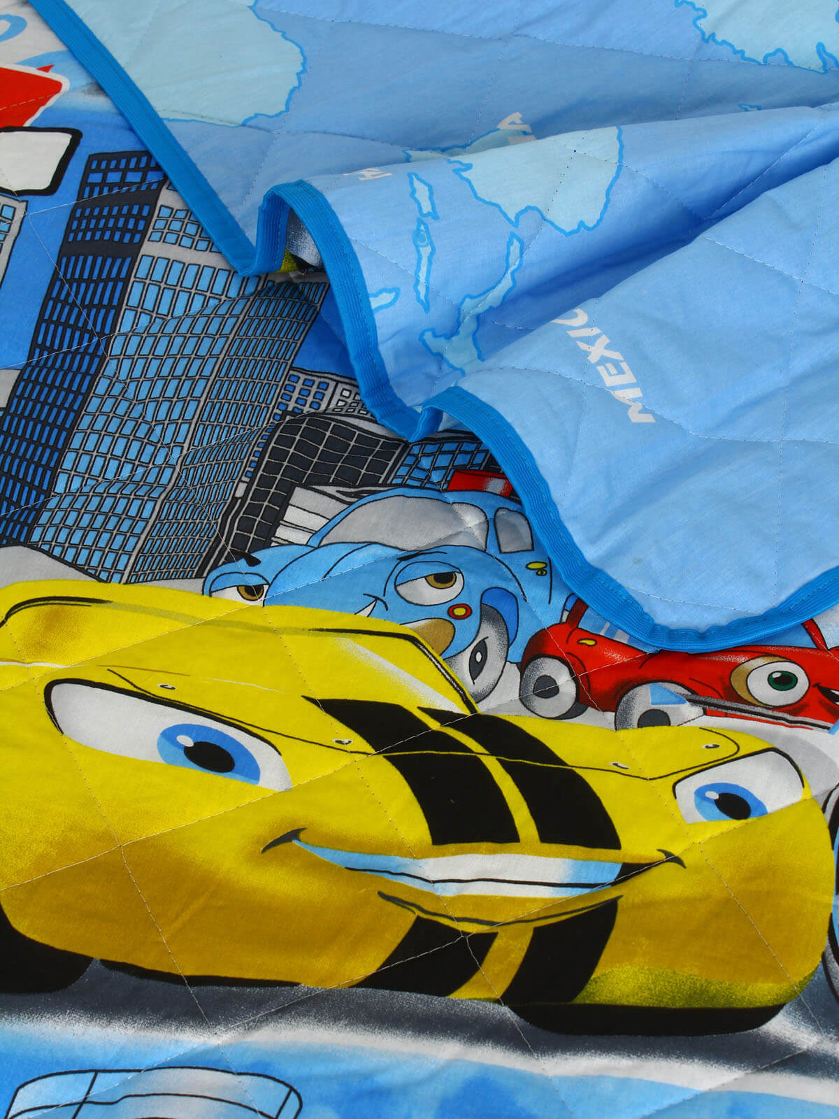 Представляем Вашему вниманию детское покрывало из поплина - материала давно полюбившегося людям за свои потребительские качества. Материал абсолютно натурален и изготавливается из 100% хлопка. Модель совершенно безопасна для здоровья и не вызывает аллергических реакций. Покрывало содержит наполнитель - синтепон, плотностью 80 гр./кв.м, обладающий отличной воздухопроницаемостью и теплоизоляционными свойствами, отлично держит форму и не "сбивается" даже спустя продолжительный период эксплуатации. Покрывало приятное на ощупь и обладает небольшой массой, что немаловажно для комфортного отдыха. Благодаря оригинальному дизайну отлично впишется в любой интерьер.