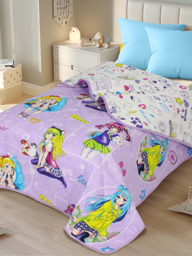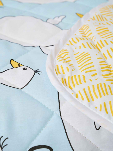 Представляем Вашему вниманию детское покрывало из поплина - материала давно полюбившегося людям за свои потребительские качества. Материал абсолютно натурален и изготавливается из 100% хлопка. Модель совершенно безопасна для здоровья и не вызывает аллергических реакций. Покрывало содержит наполнитель - синтепон, плотностью 80 гр./кв.м, обладающий отличной воздухопроницаемостью и теплоизоляционными свойствами, отлично держит форму и не "сбивается" даже спустя продолжительный период эксплуатации. Покрывало приятное на ощупь и обладает небольшой массой, что немаловажно для комфортного отдыха. Благодаря оригинальному дизайну отлично впишется в любой интерьер.