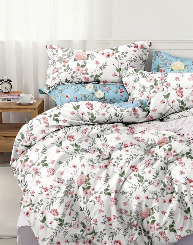 Комплекты постельного белья из поплина отшиваются с наволочками в количестве 2 штук. с застежкой - клапан на наволочках и прорезью на пододеяльнике. Упаковываются в прозрачный пакет ПВХ и комплектуются картонным вкладышем с ярким печатным изображением.