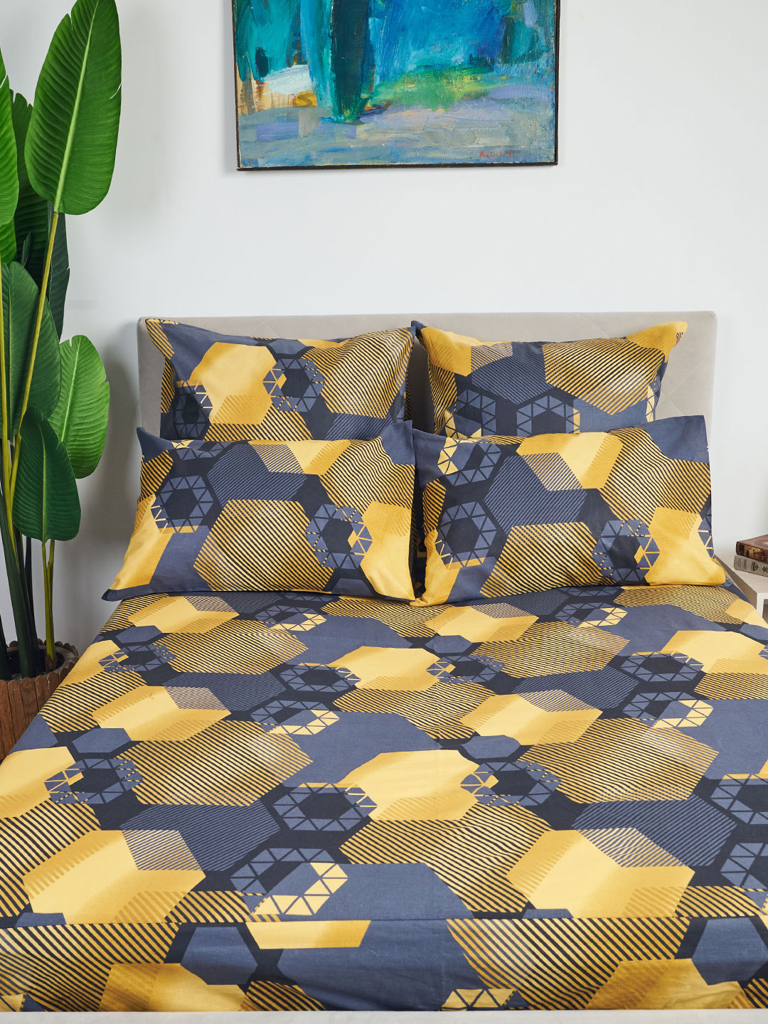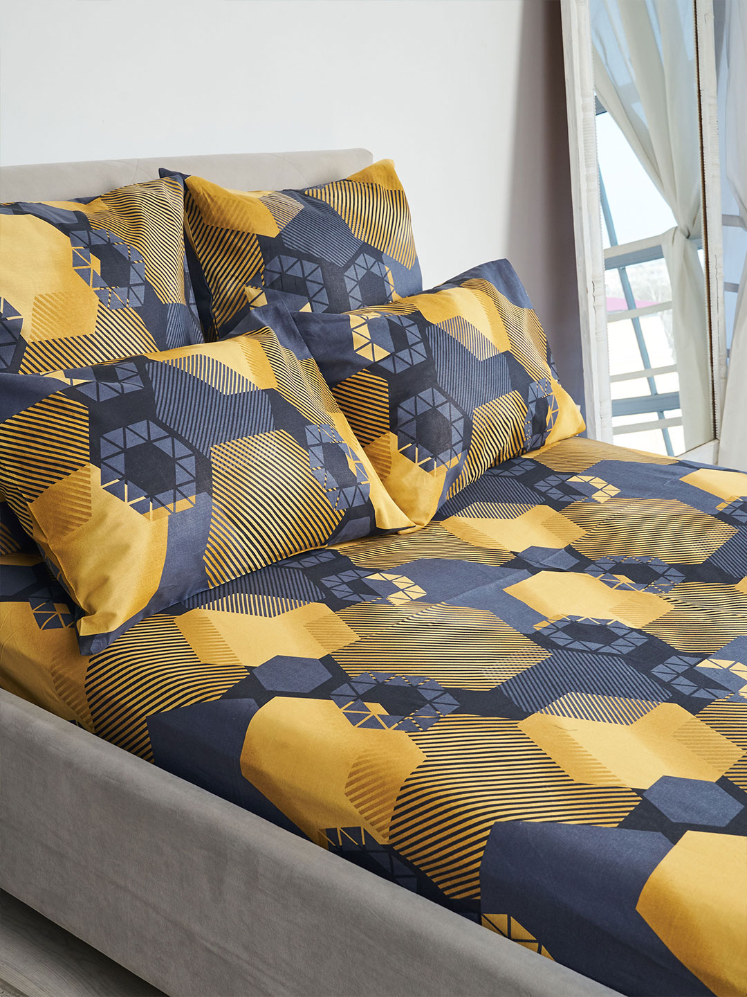 Простыня бязь на резинке - Золотые шестигранники
