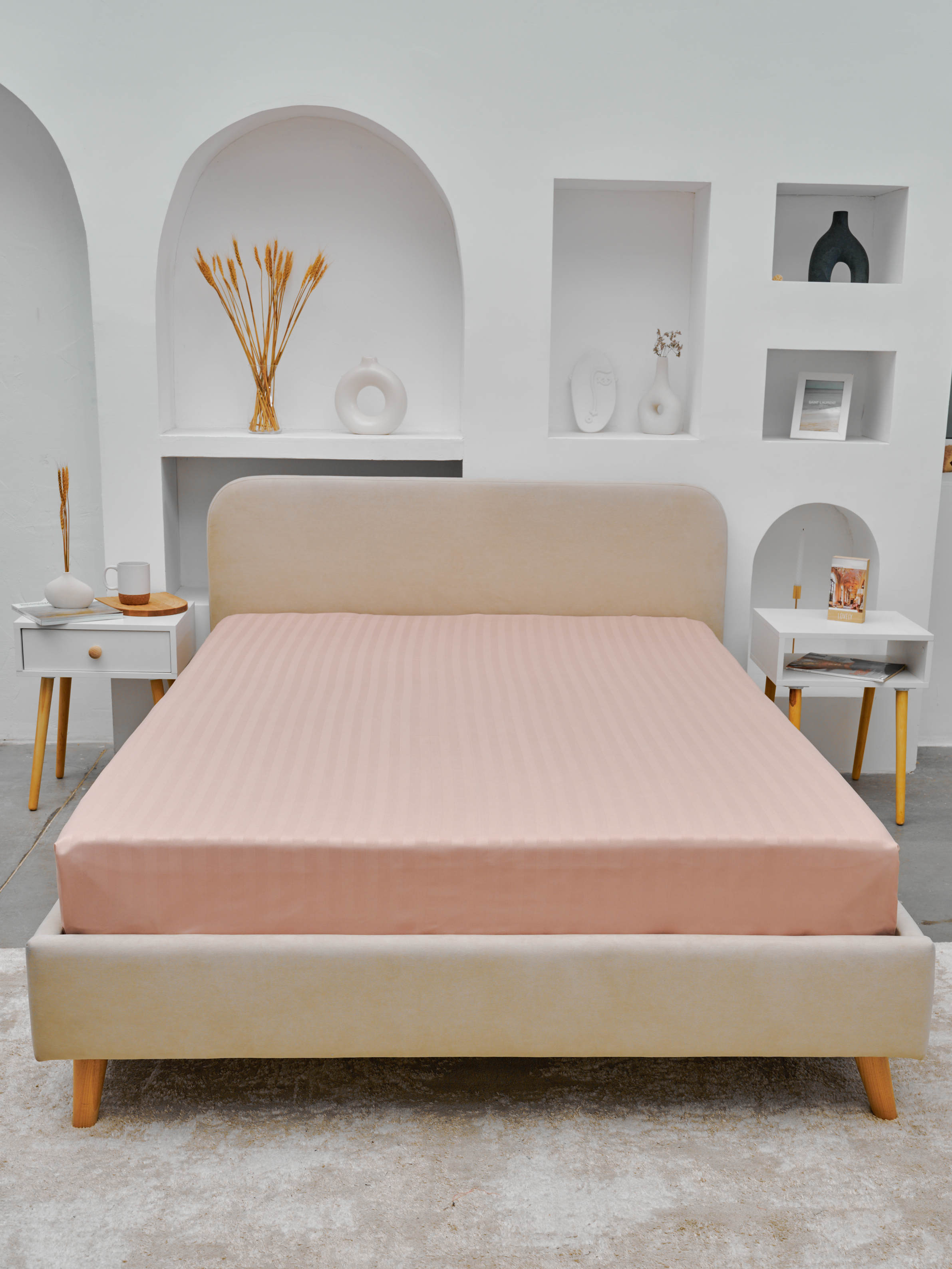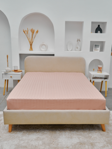 Простыня Микрофибра Страйп на резинке - Пудра
