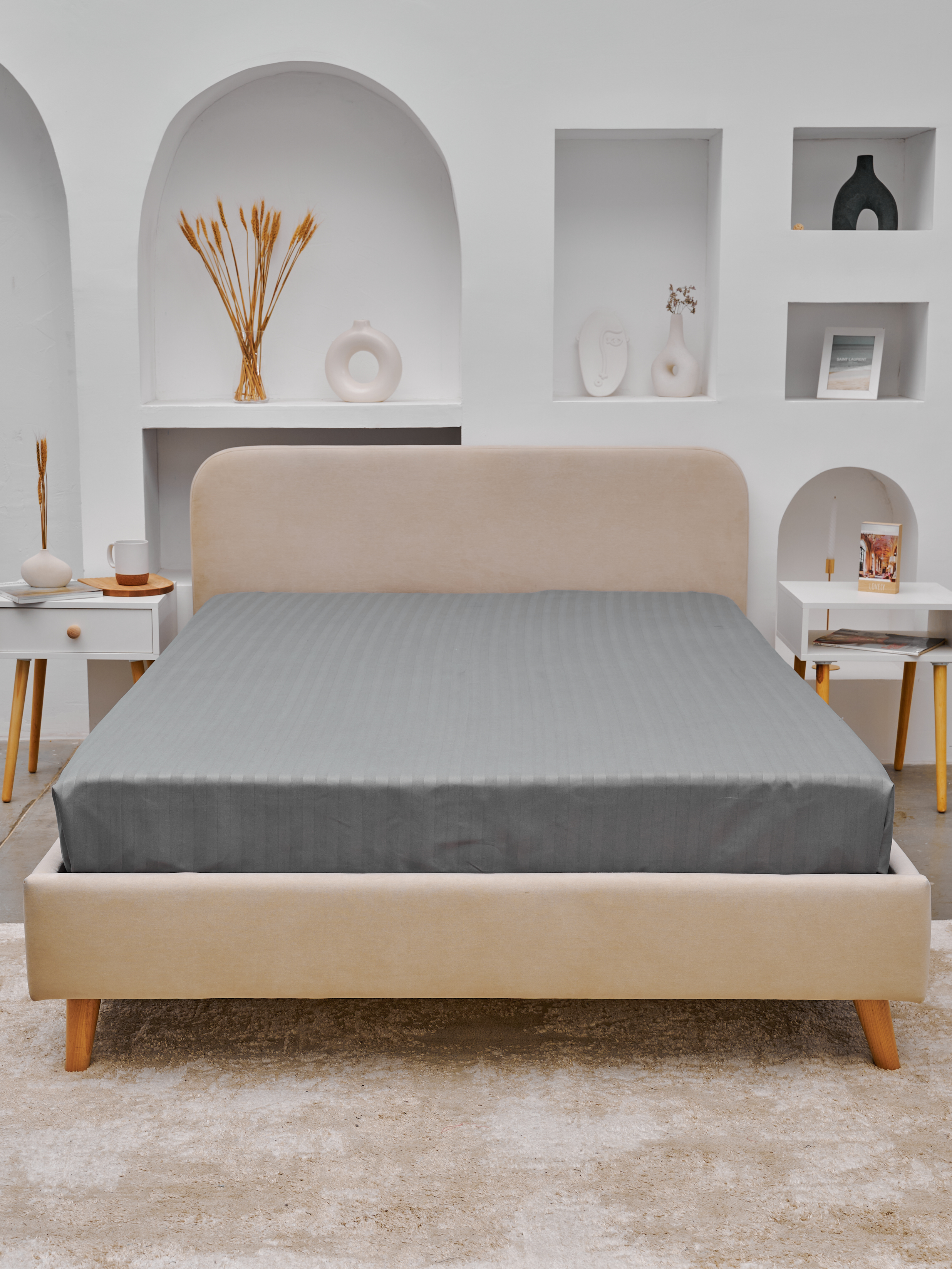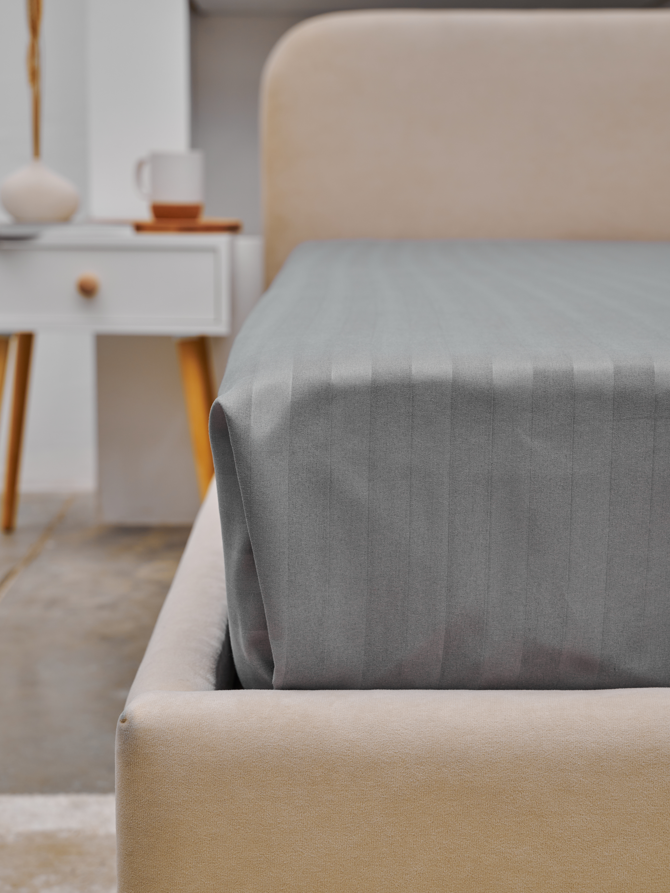 Простыня Микрофибра Страйп - Светлый серый