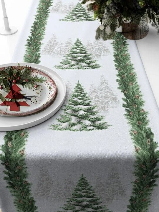 Дорожка столовая "Снежные ели" 45*150 см. хлопок 100%